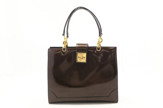 Celine Handbag in Brown Patent Leather