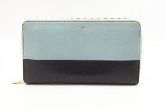 Celine Long Zippy Wallet in Blue and Black Leather