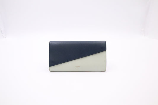 Celine Long Wallet in Navy and Mint Green Leather