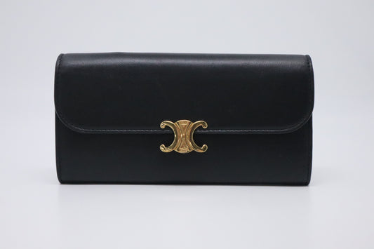 Celine Large Flap Wallet in Black Triomphe Leather