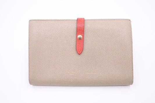 Celine Long Wallet in Tan Leather and Red Accents