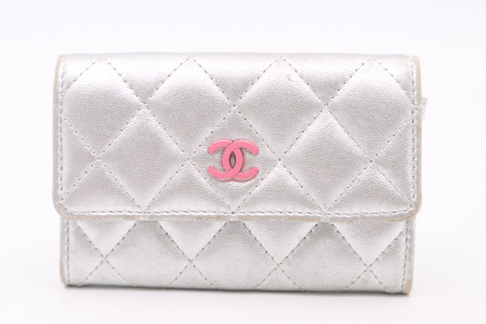 Chanel Card Case in Silver Matelassé Leather