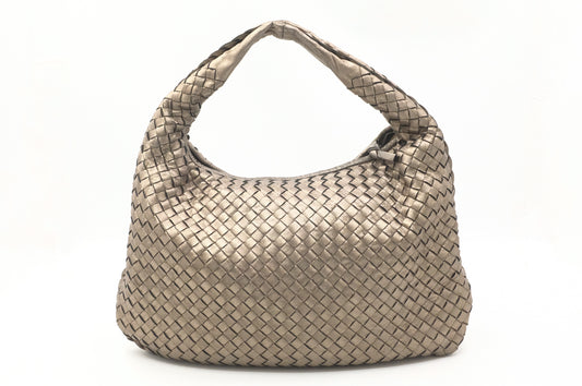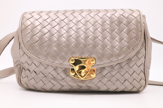 Bottega Veneta Shoulder Bag in Greige Metallic Intrecciato Leather