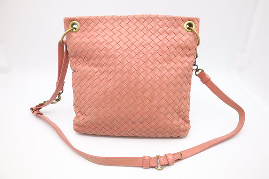 Bottega Veneta Leather Crossbody in Pink Intrecciato (Adjustable)