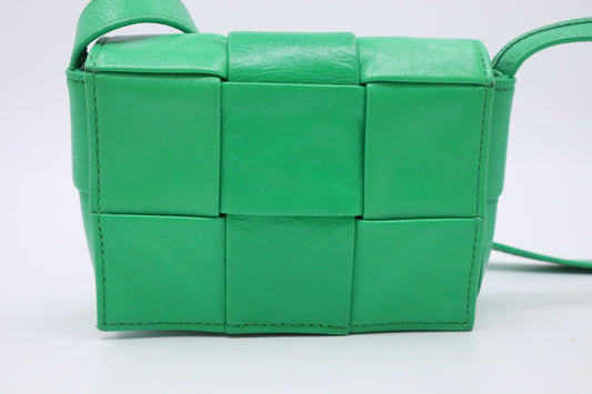 Bottega Veneta Mini Cassette in Green Intrecciato Leather