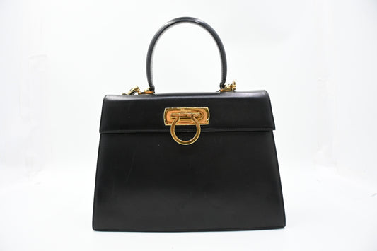 Ferragamo Gancini Two Way Handbag in Black Leather