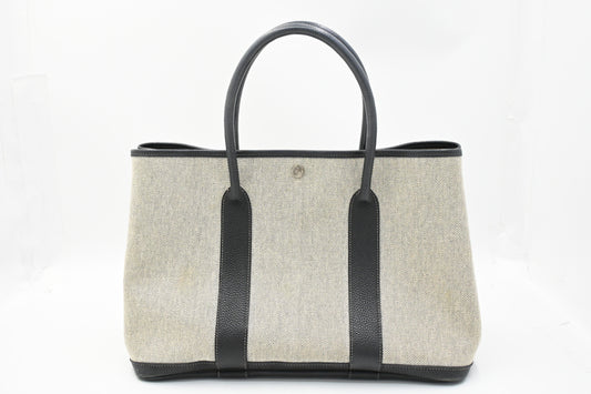 Hermes Garden Party 36 in White Canvas and Black Leather