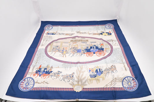 Hermes 'L'River en Poste' Carre 90 in Blue Silk