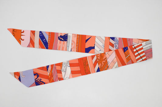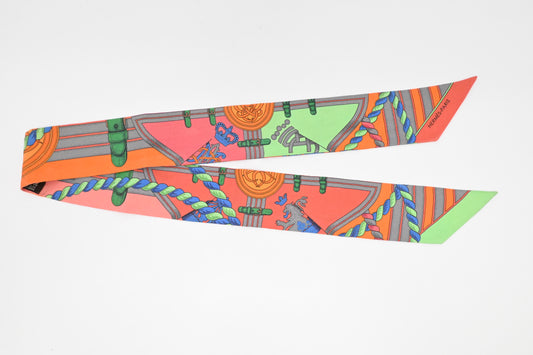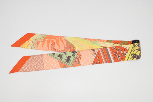 Hermes 'Grande Tenue' Twilly in Orange Multicolor Silk
