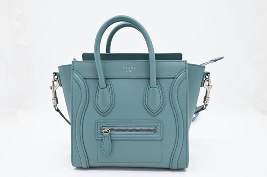 Celine Nano Luggage in Teal Leather