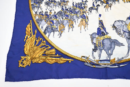 Hermes 'Marine et Cavalerie' Carre 90 in Blue Silk