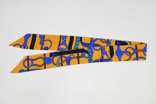 Hermes 'Panoplie Equestre' Twilly in Yellow and Blue Silk