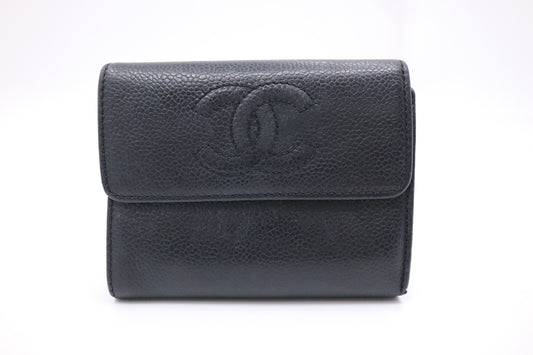 Chanel Compact Wallet in Black Caviar Leather