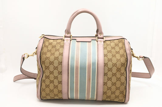 Gucci Boston Bag in GG Canvas & Light Pink Leather