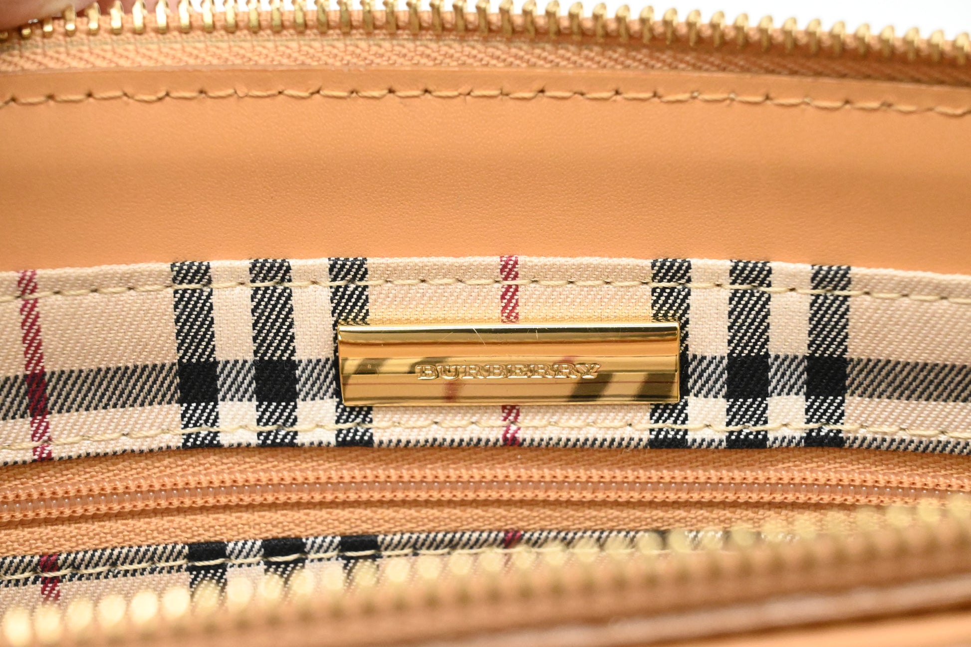 - Hardware: Shiny gold tone. Smooth zipper