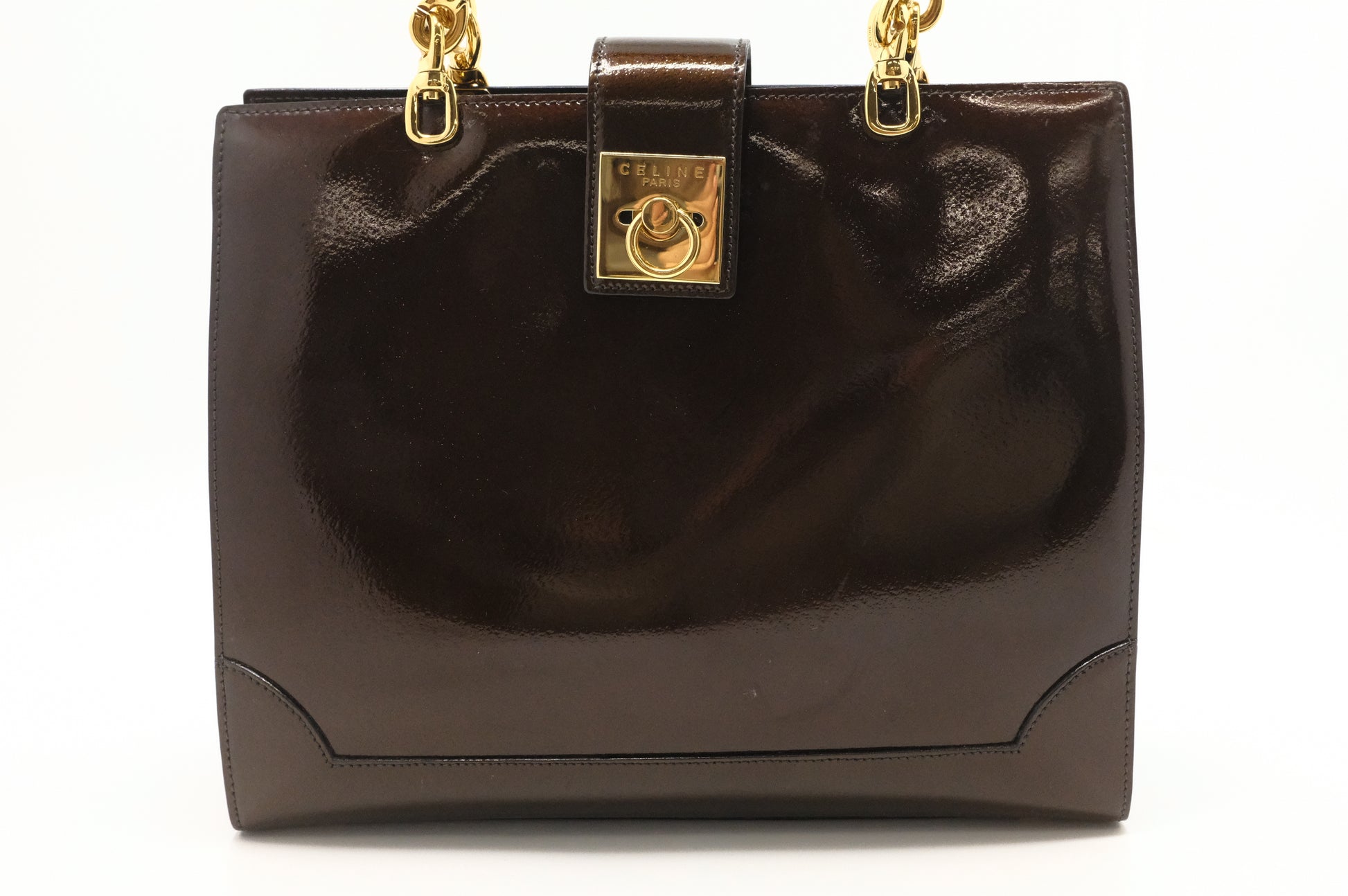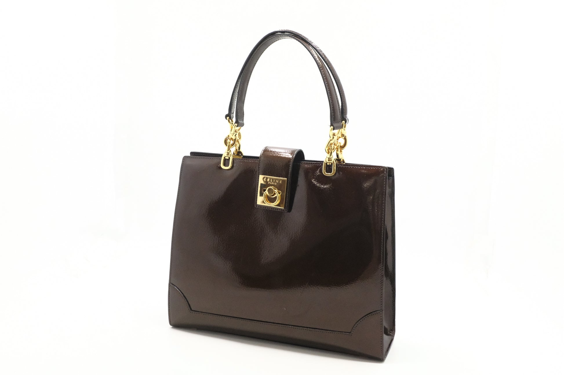 Celine Handbag in Brown Patent Leather