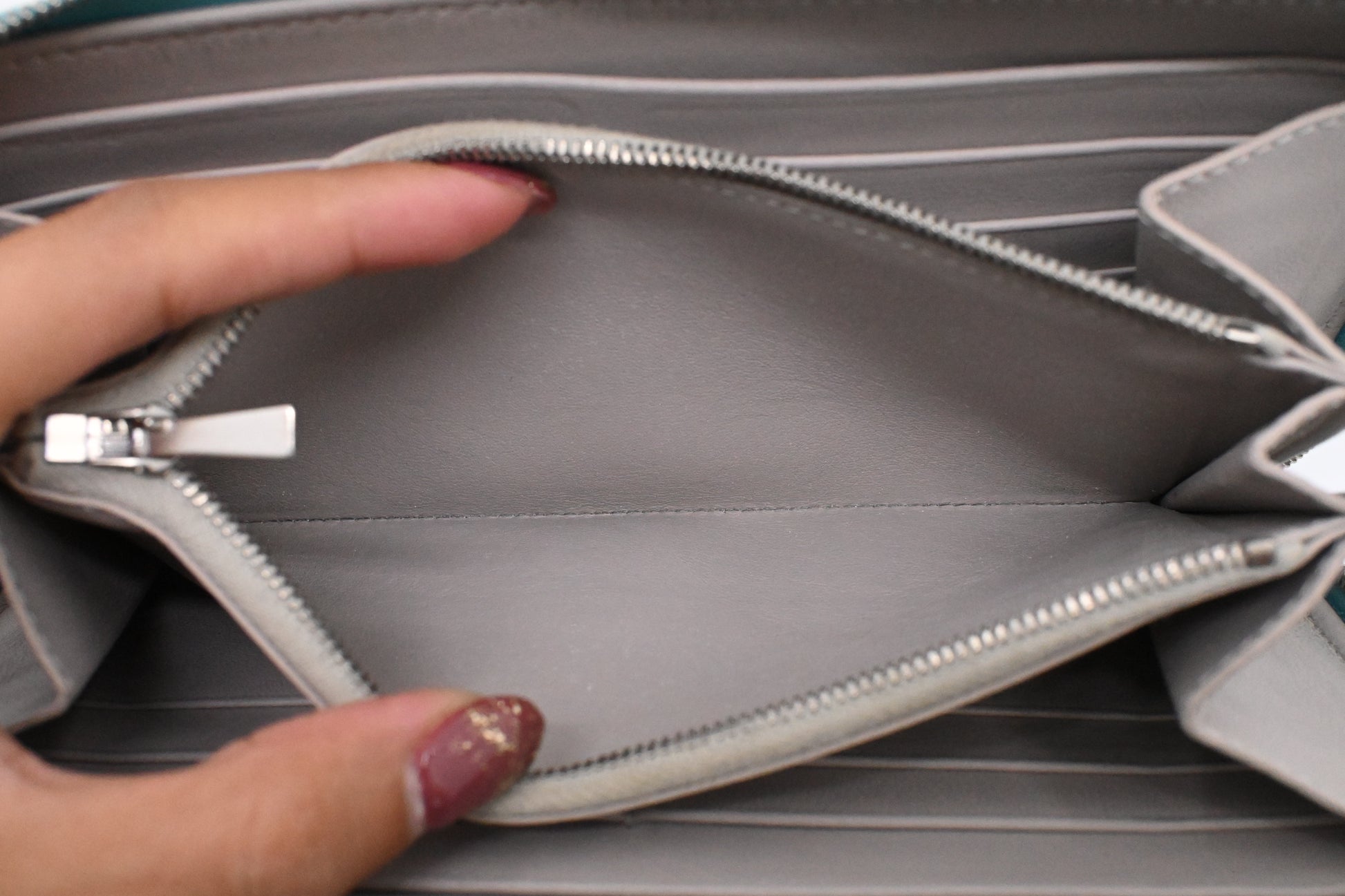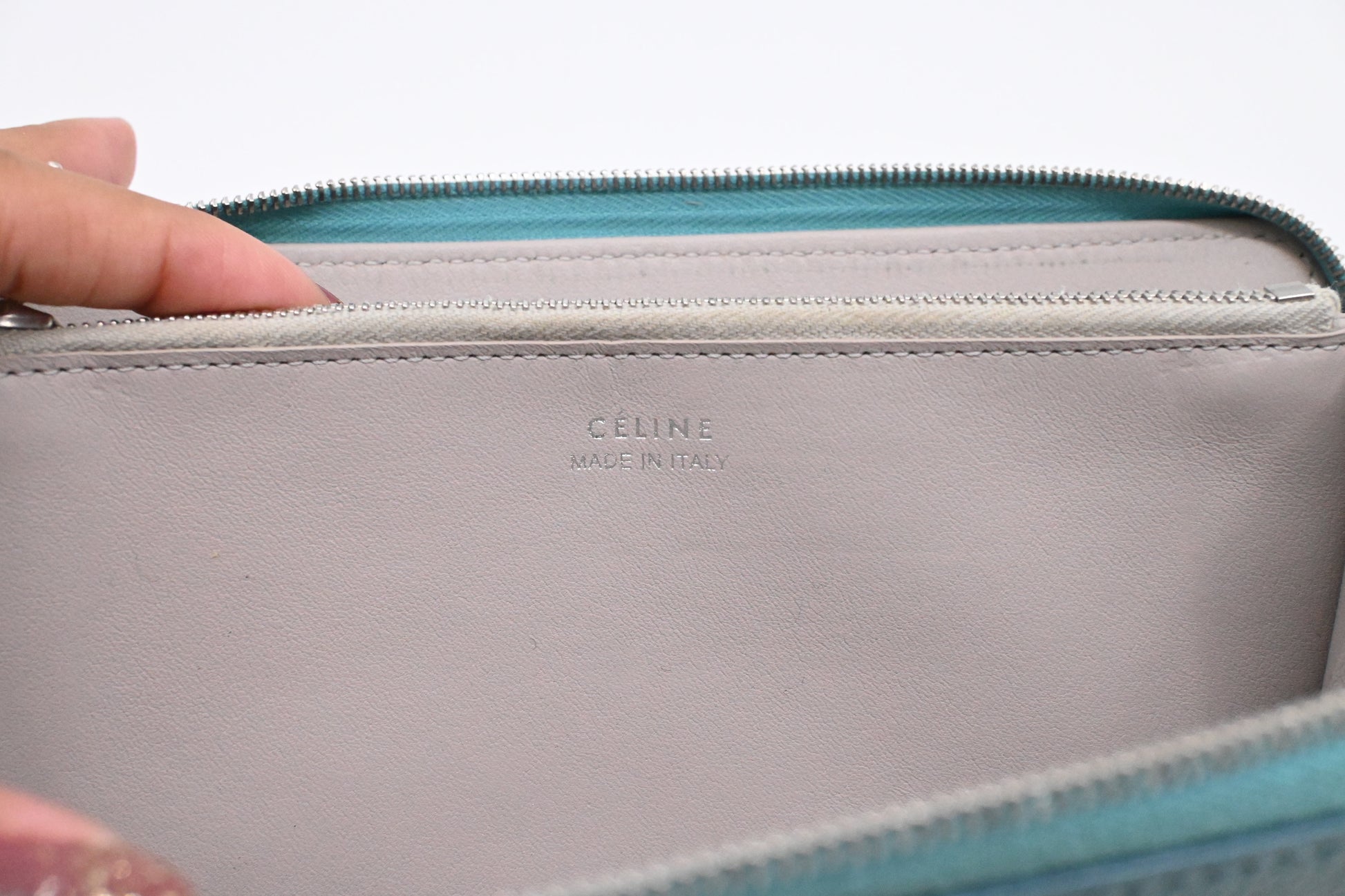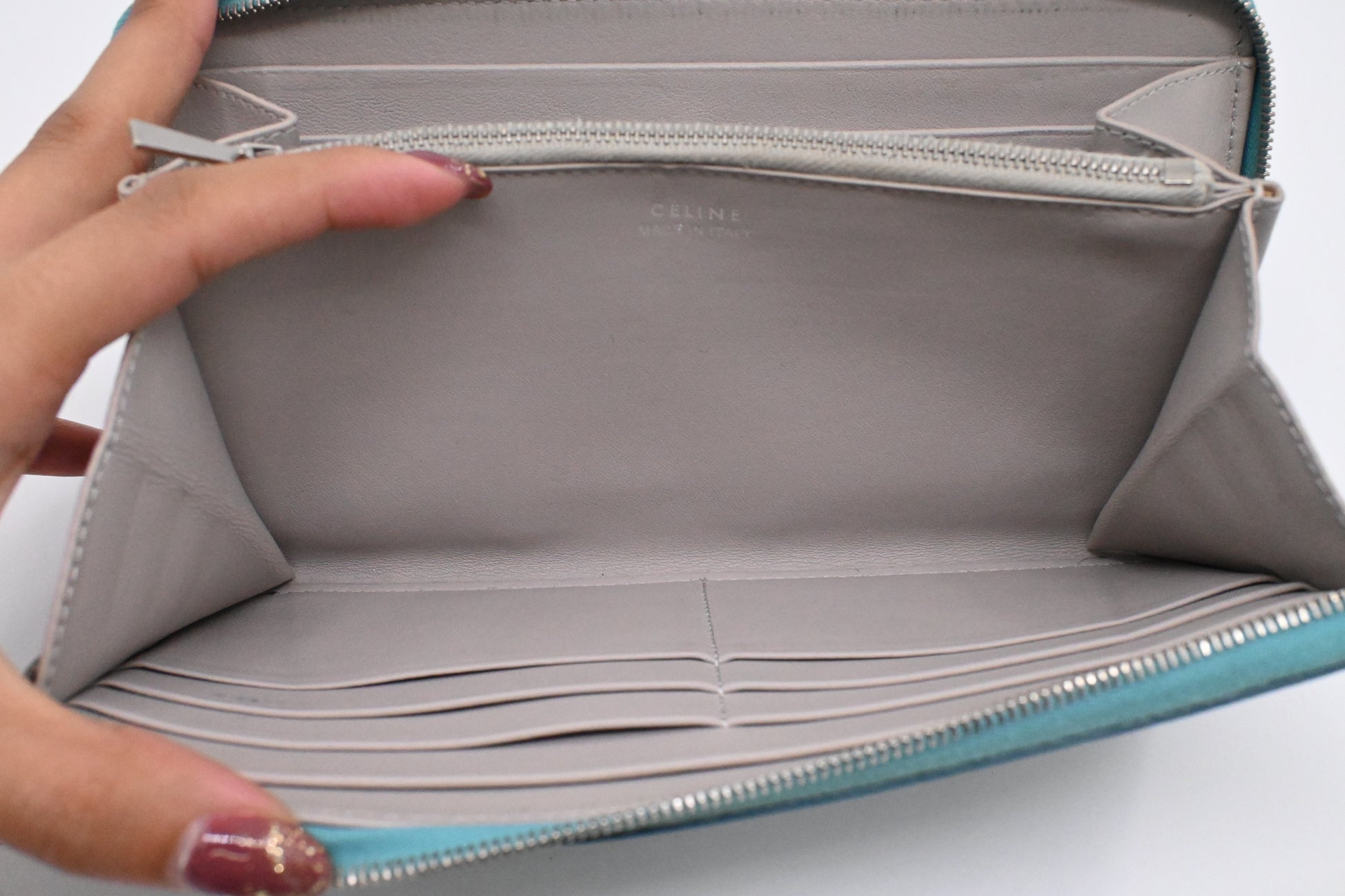 Celine Long Zippy Wallet in Teal Leather