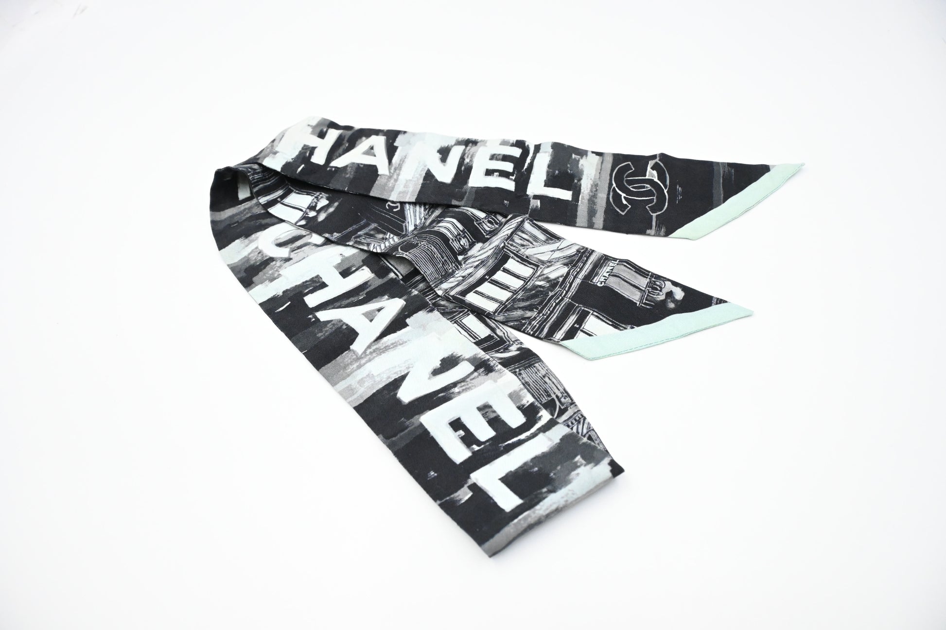 Chanel Bandeau in Mint and Black Silk
