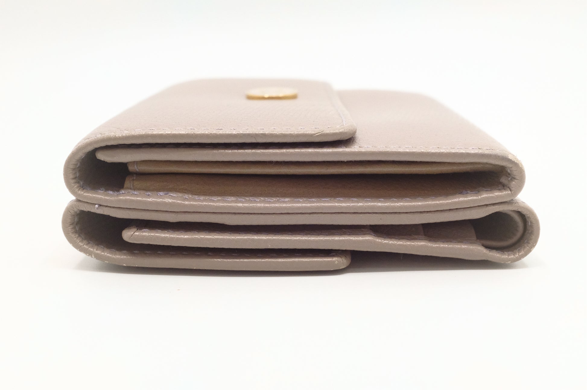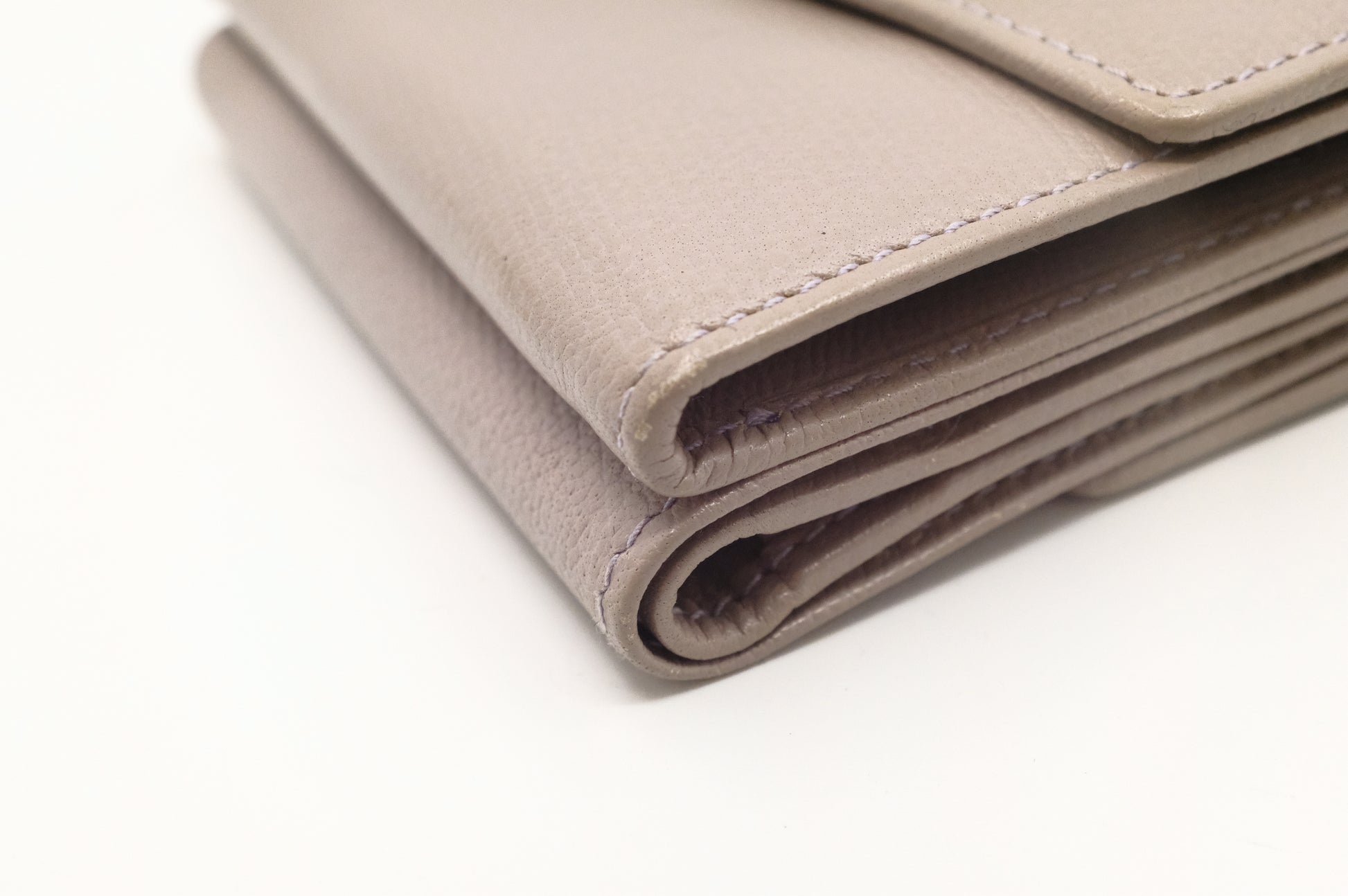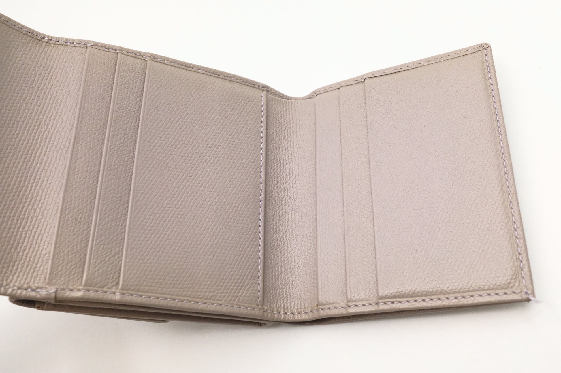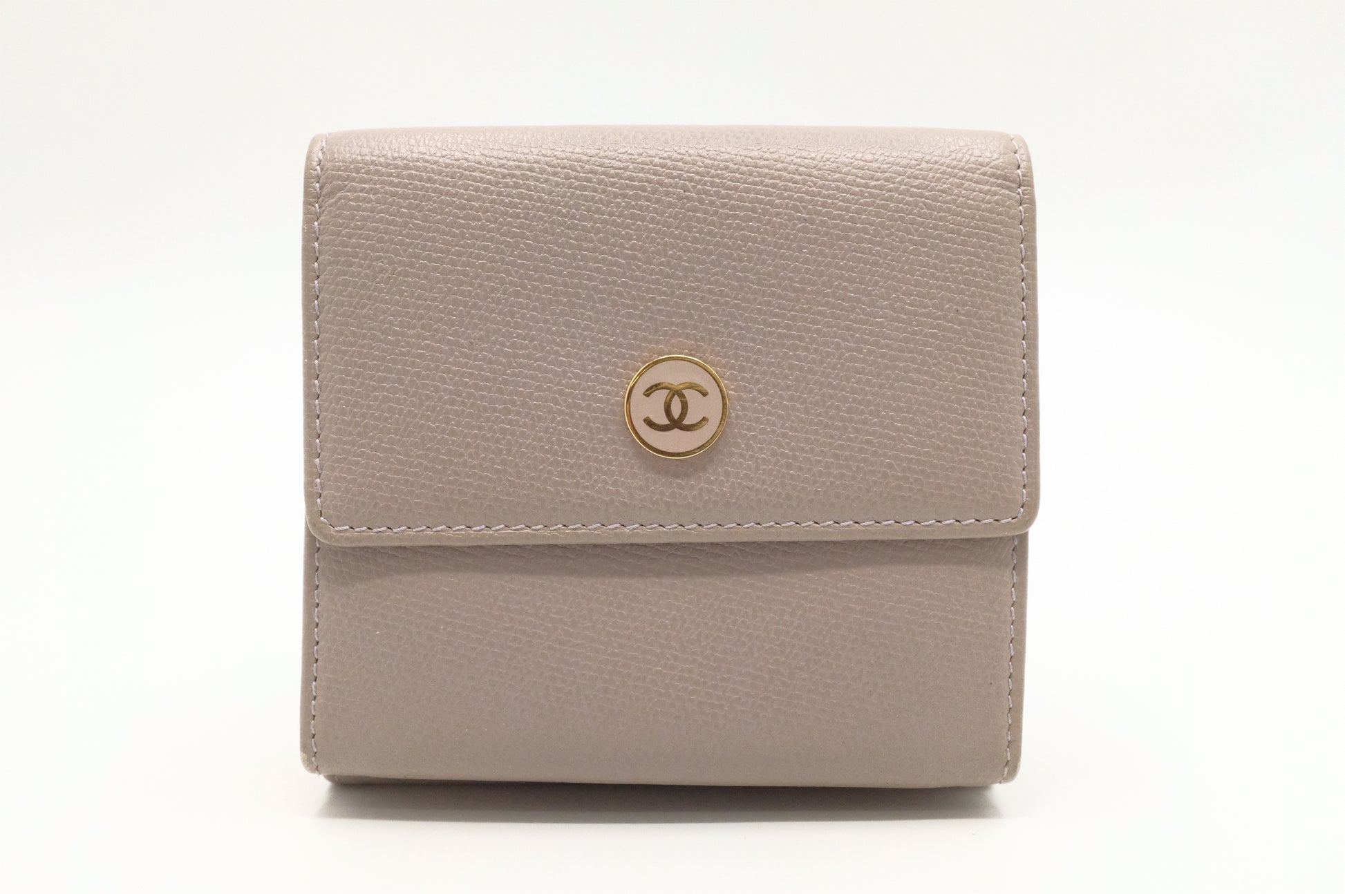 Chanel Compact Wallet in Grey Beige Leather