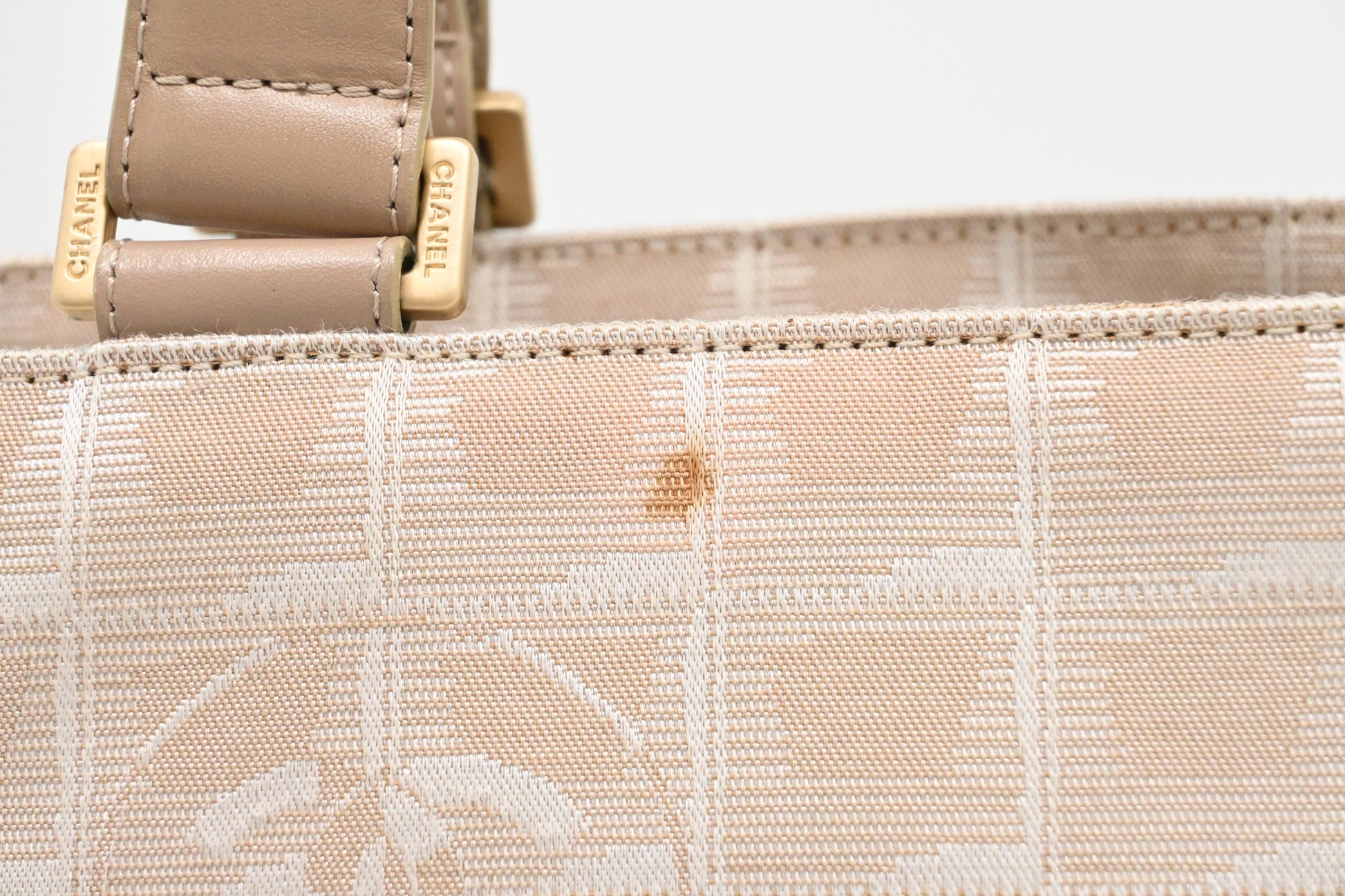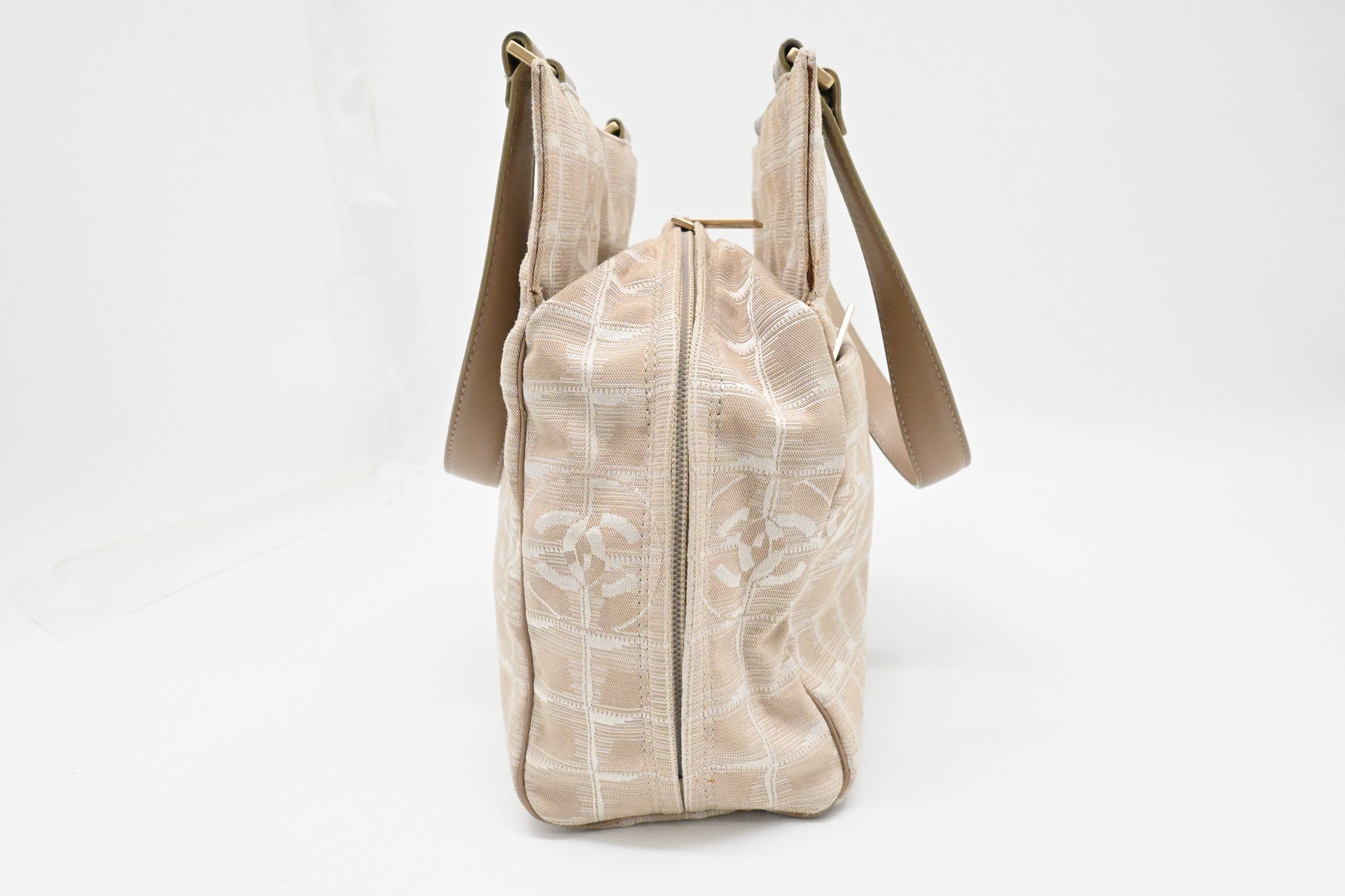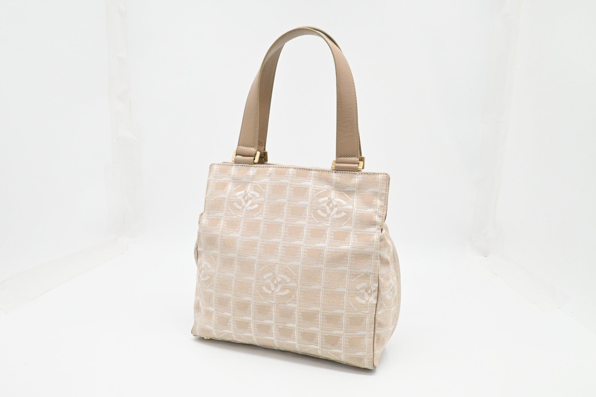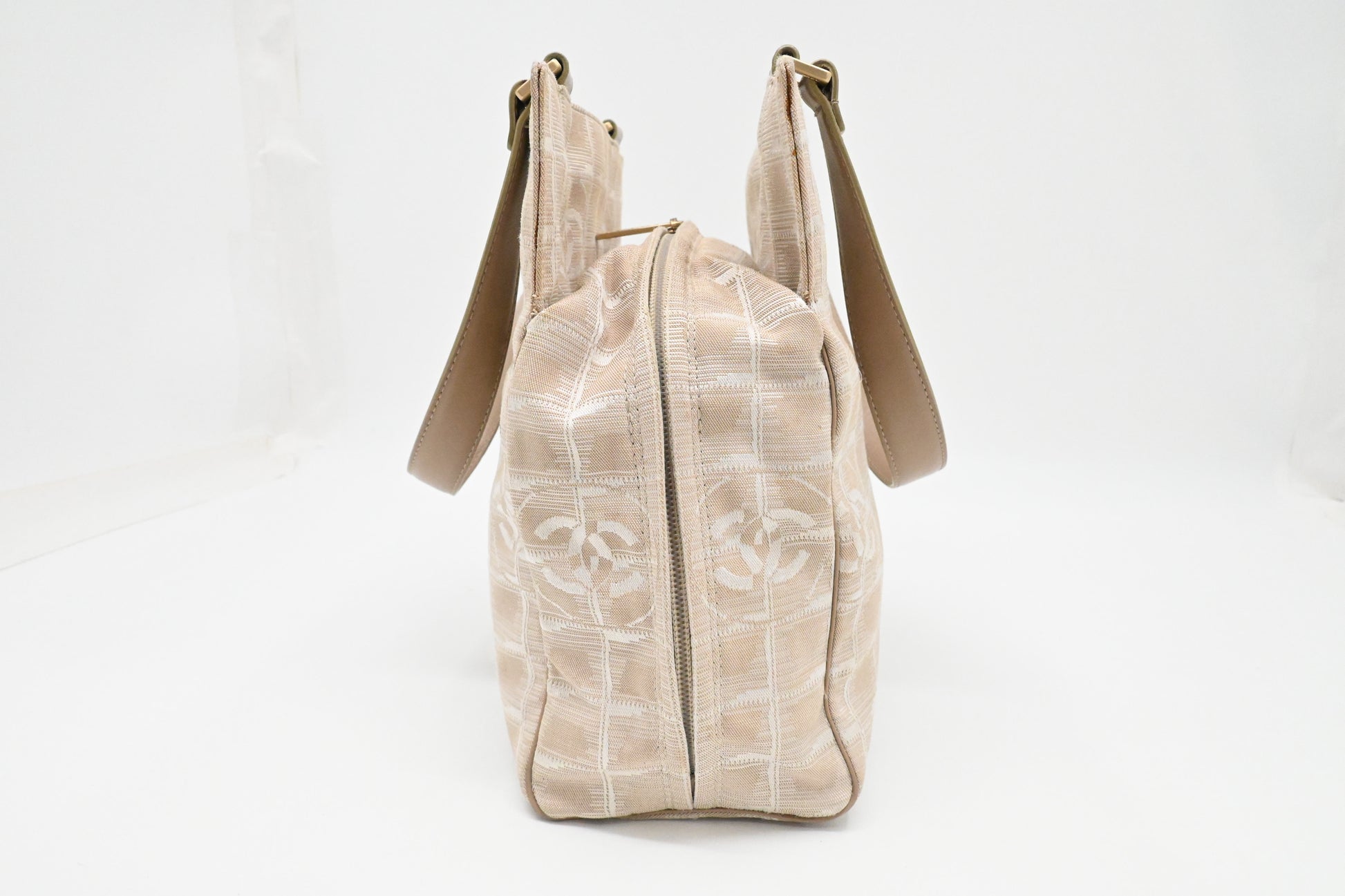 Chanel New Travel Line Shoulder Bag in Beige Canvas