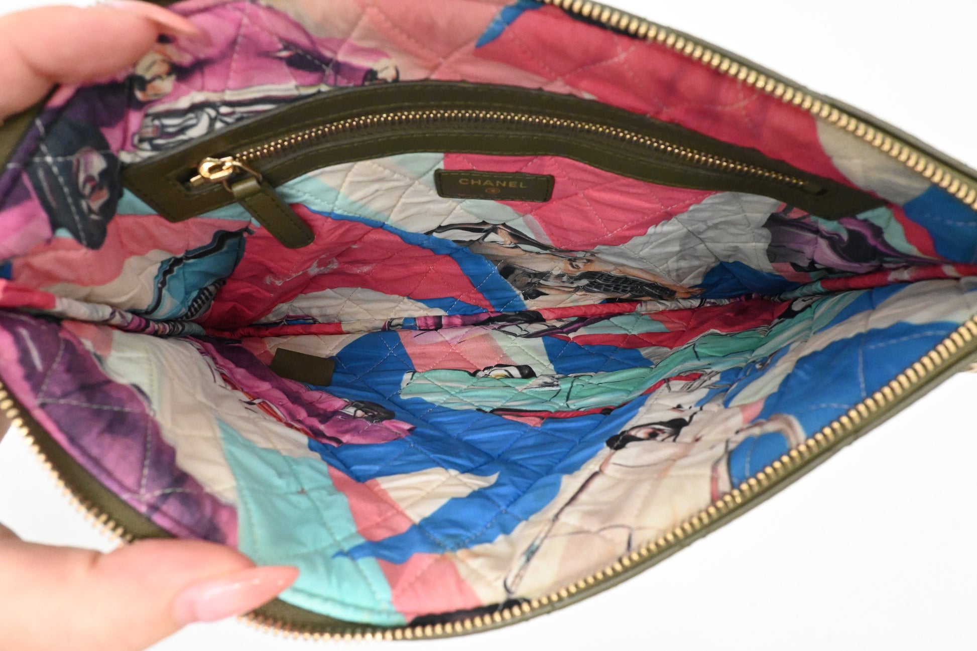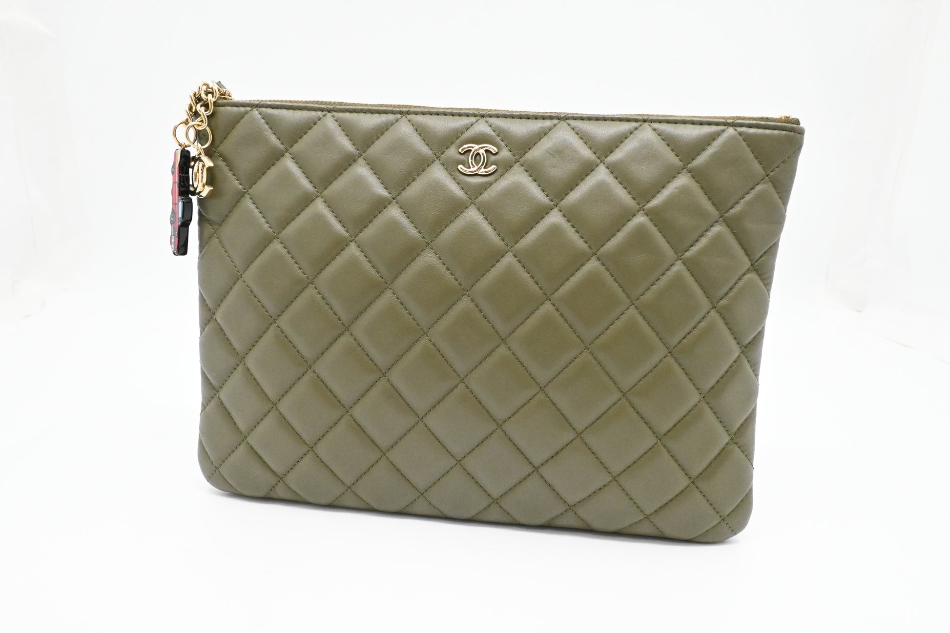 Chanel Small O Case in Olive Green Leather