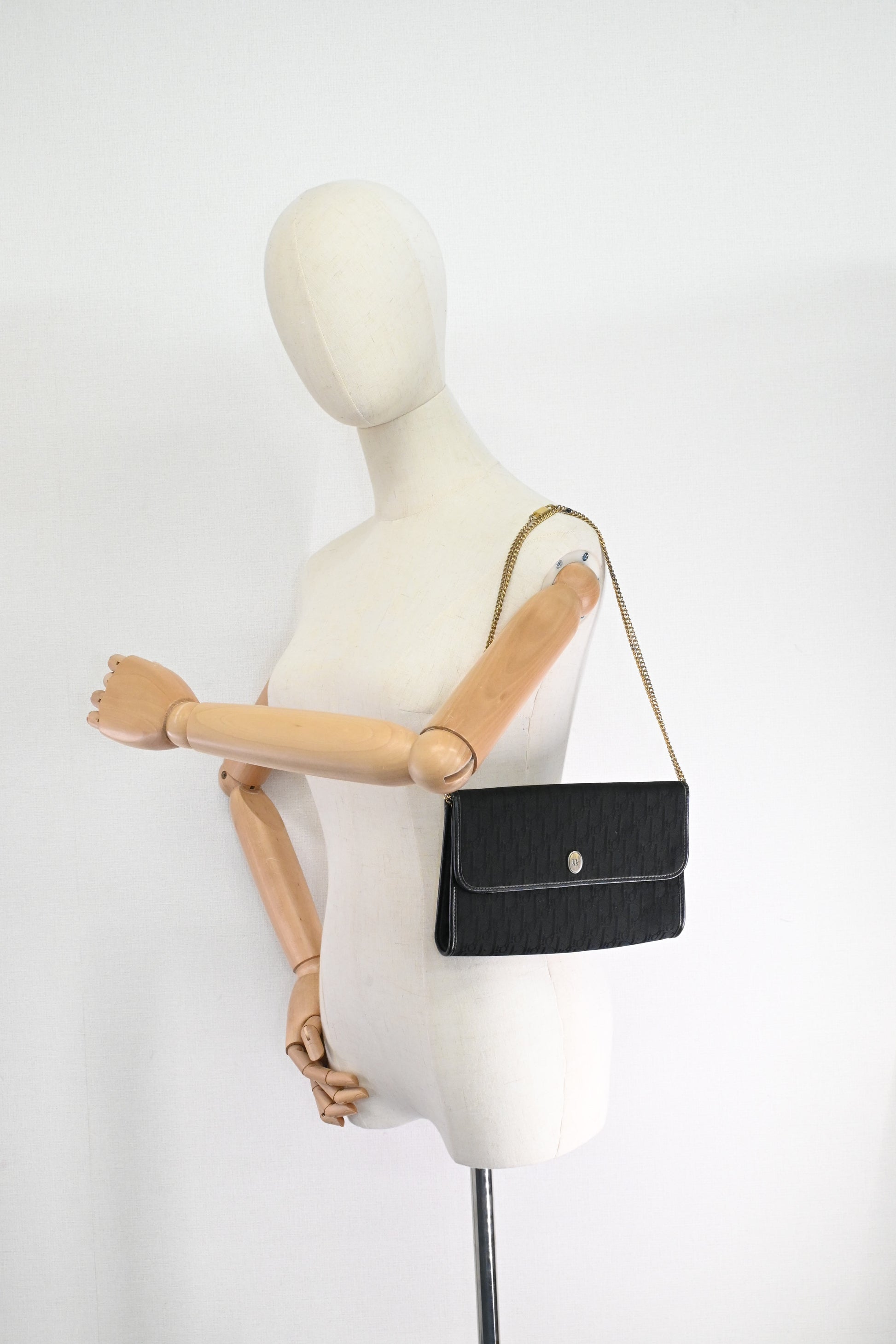 Dior Chain Shoulder Bag in Black Canvas