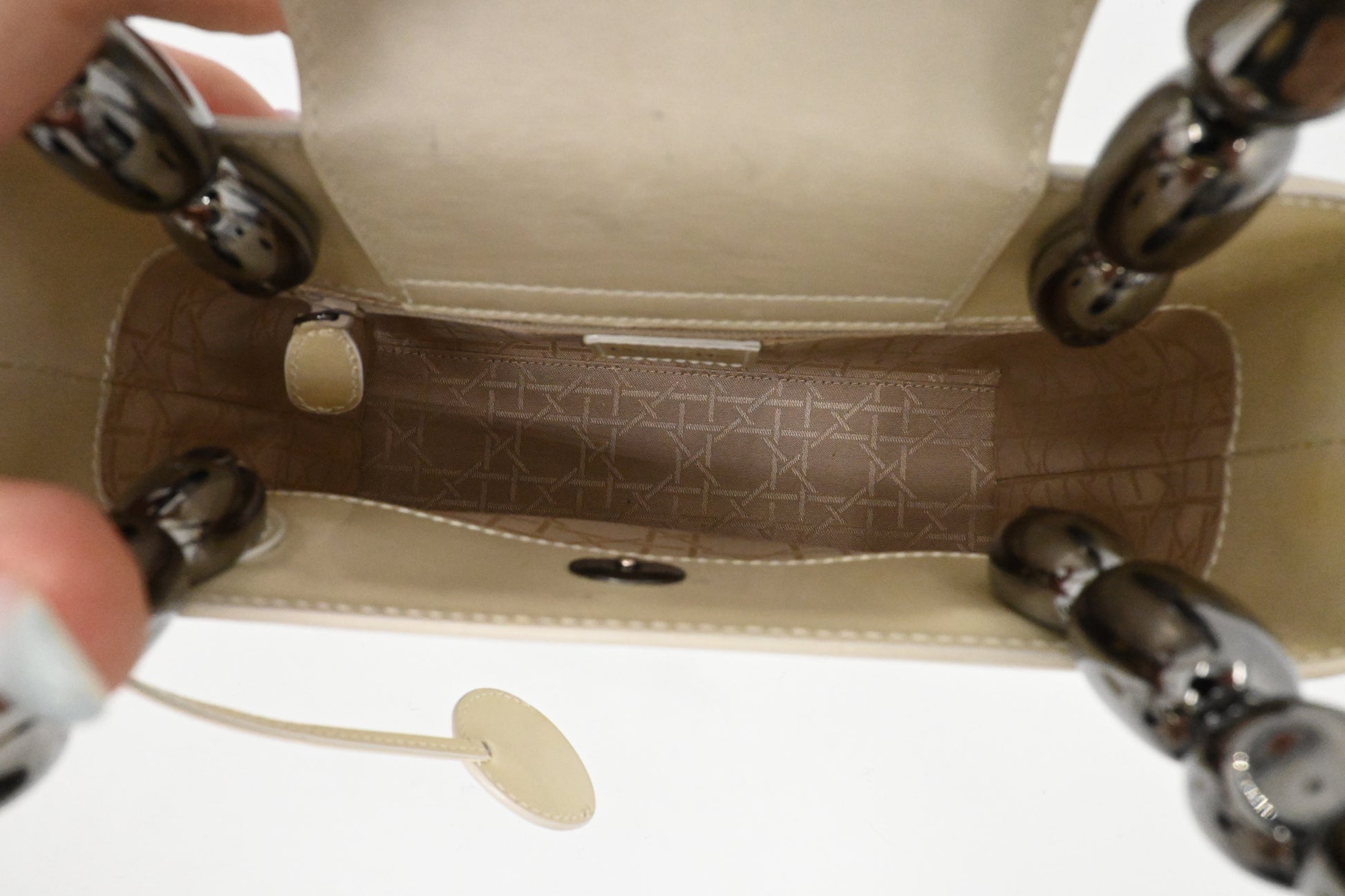 Dior Small Malice Handbag in Pearl White Patent Leather