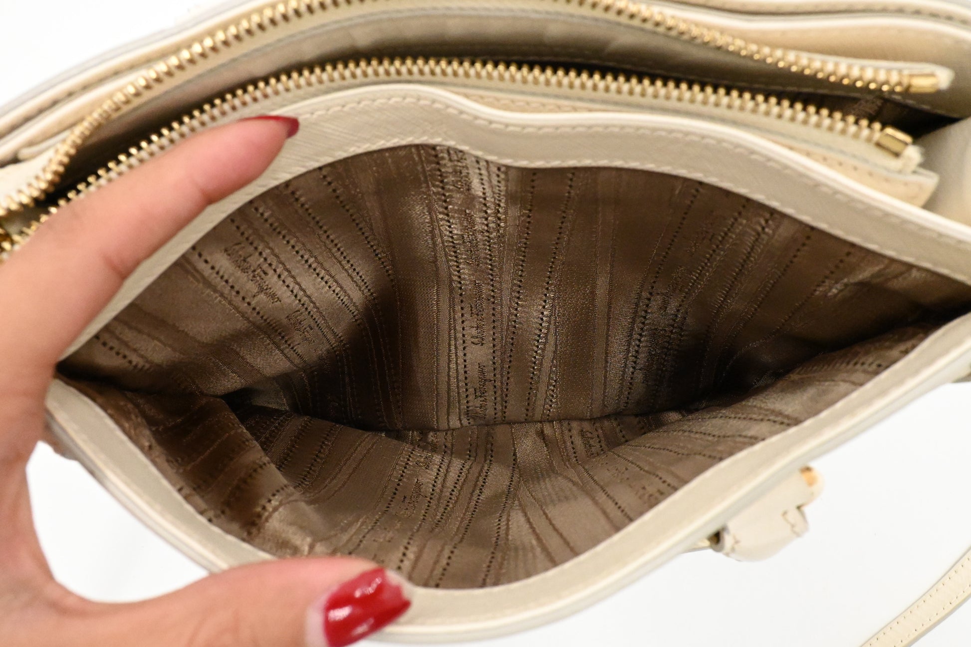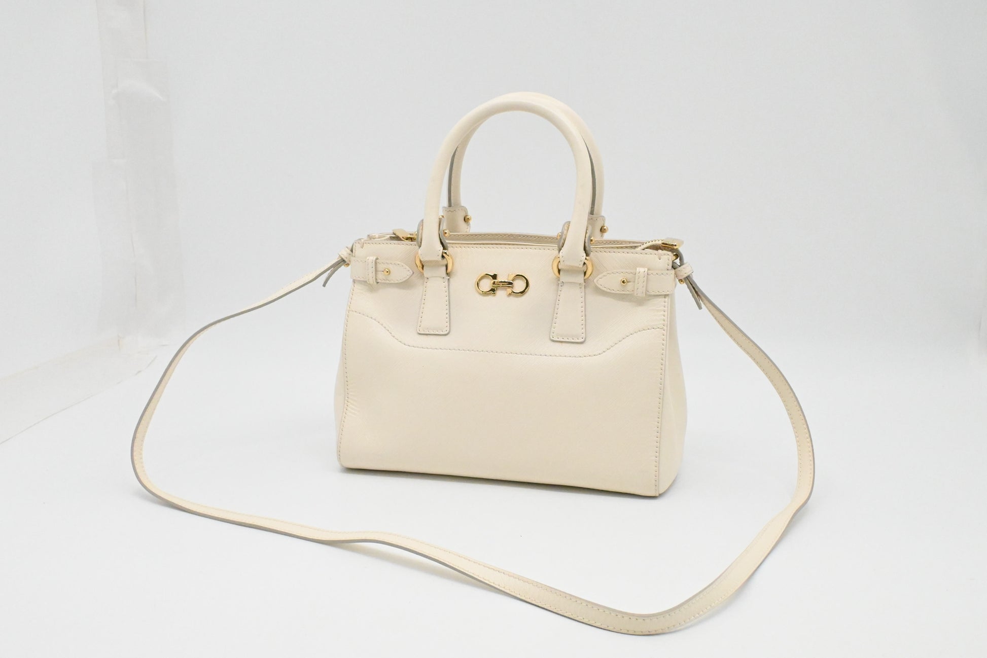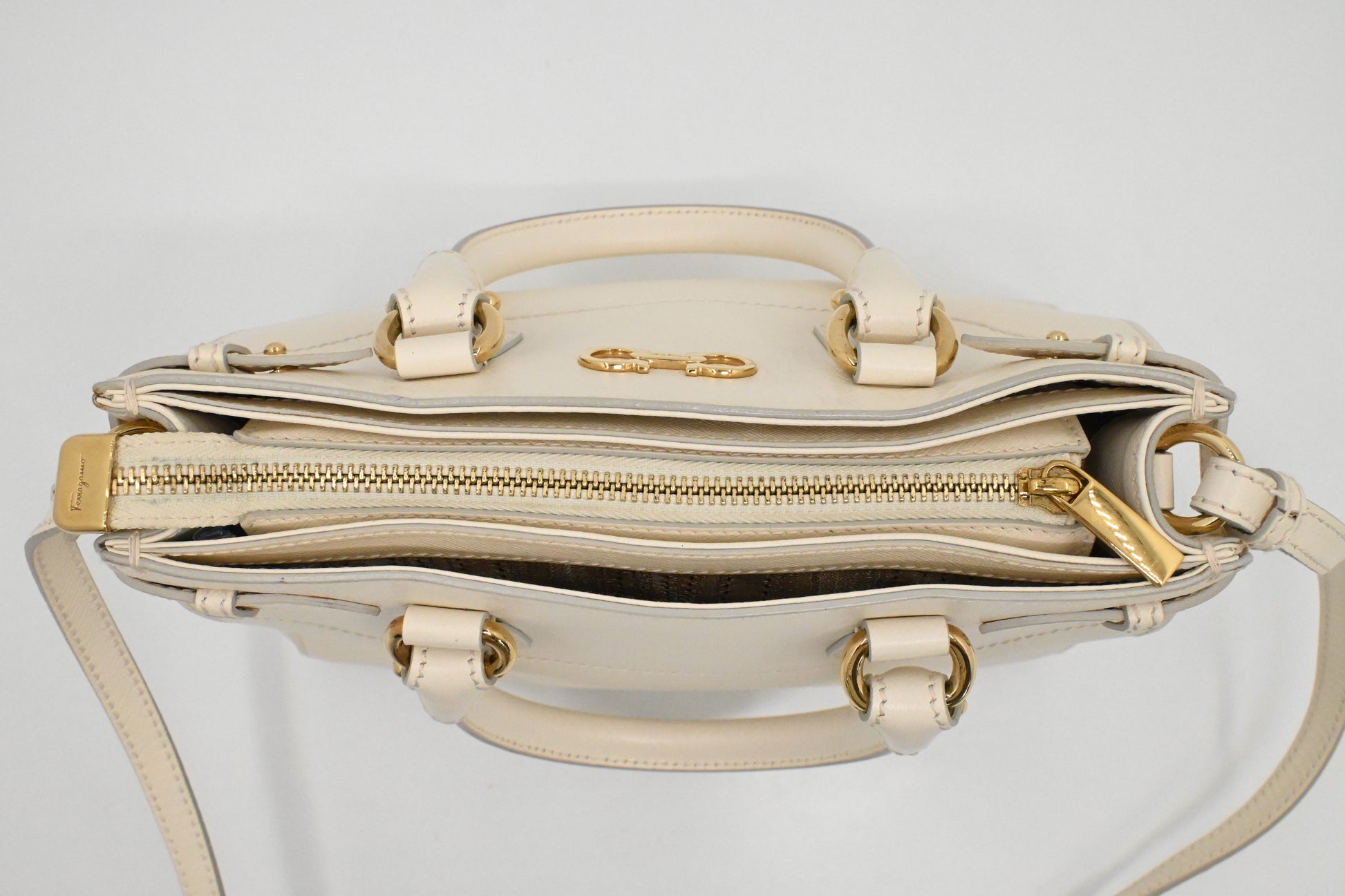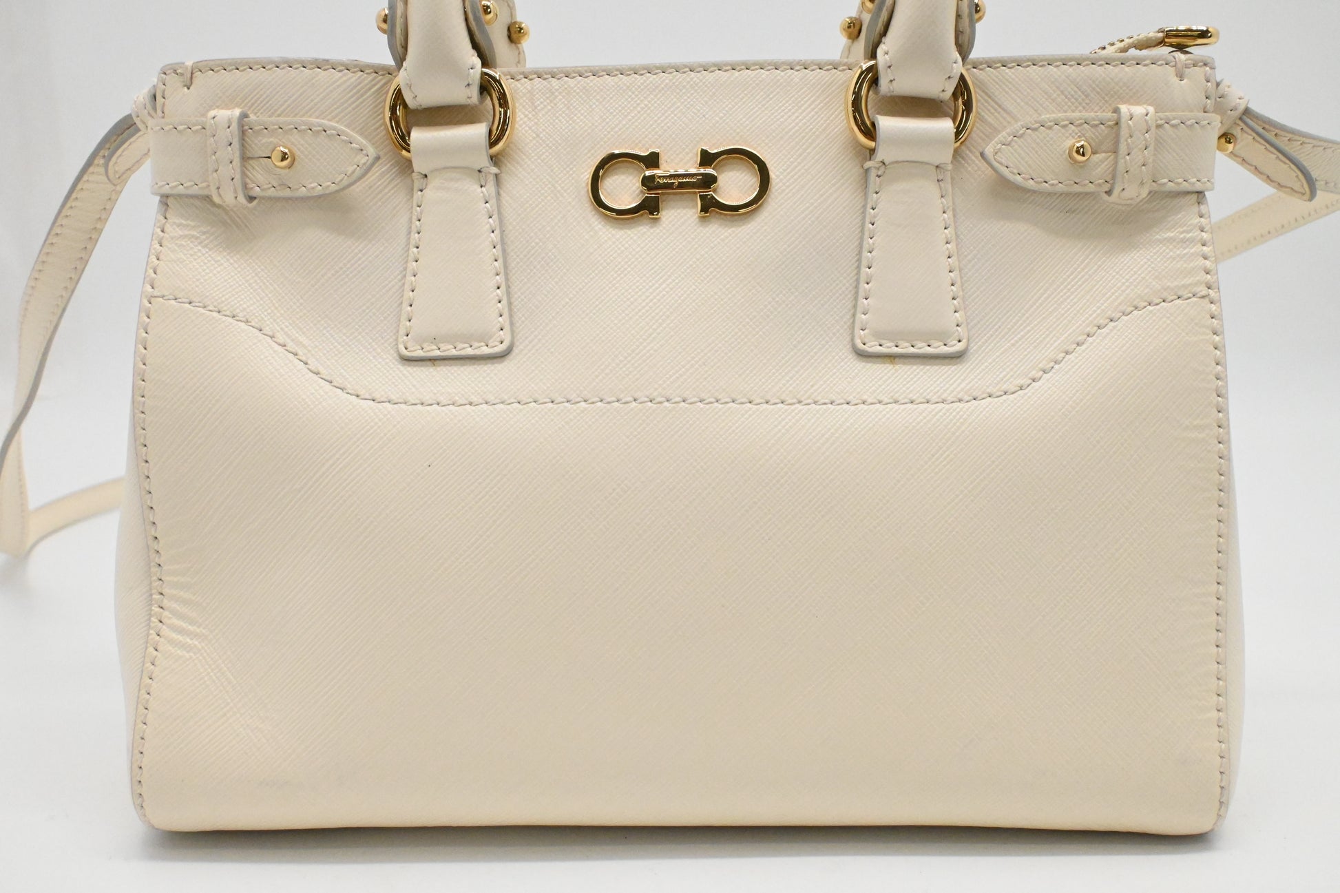 Ferragamo Vara Handbag in Cream Leather