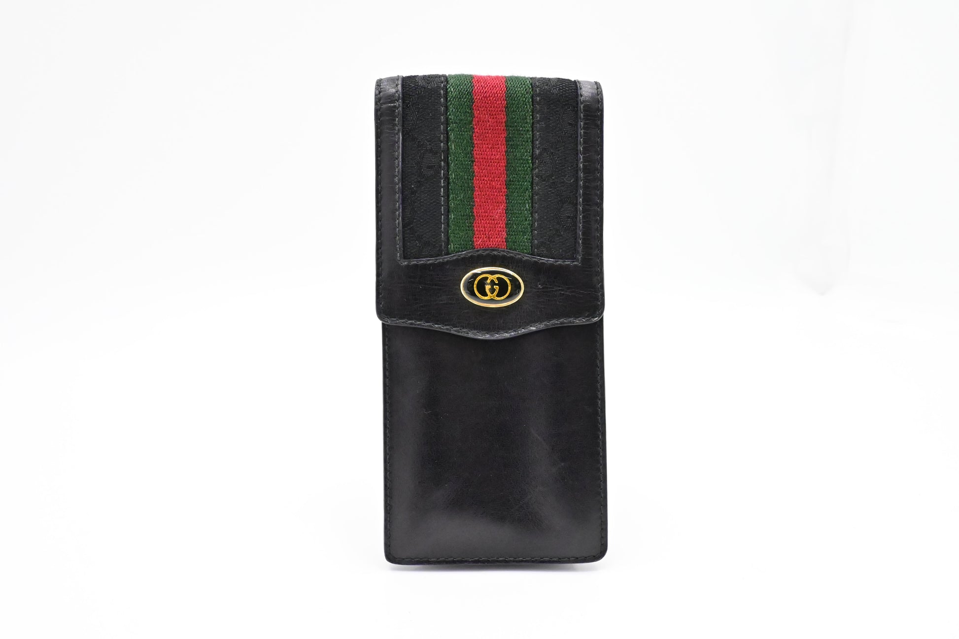 Gucci 'Accessories Collection' Glasses Case in Black Sherry Line Canvas and Leather