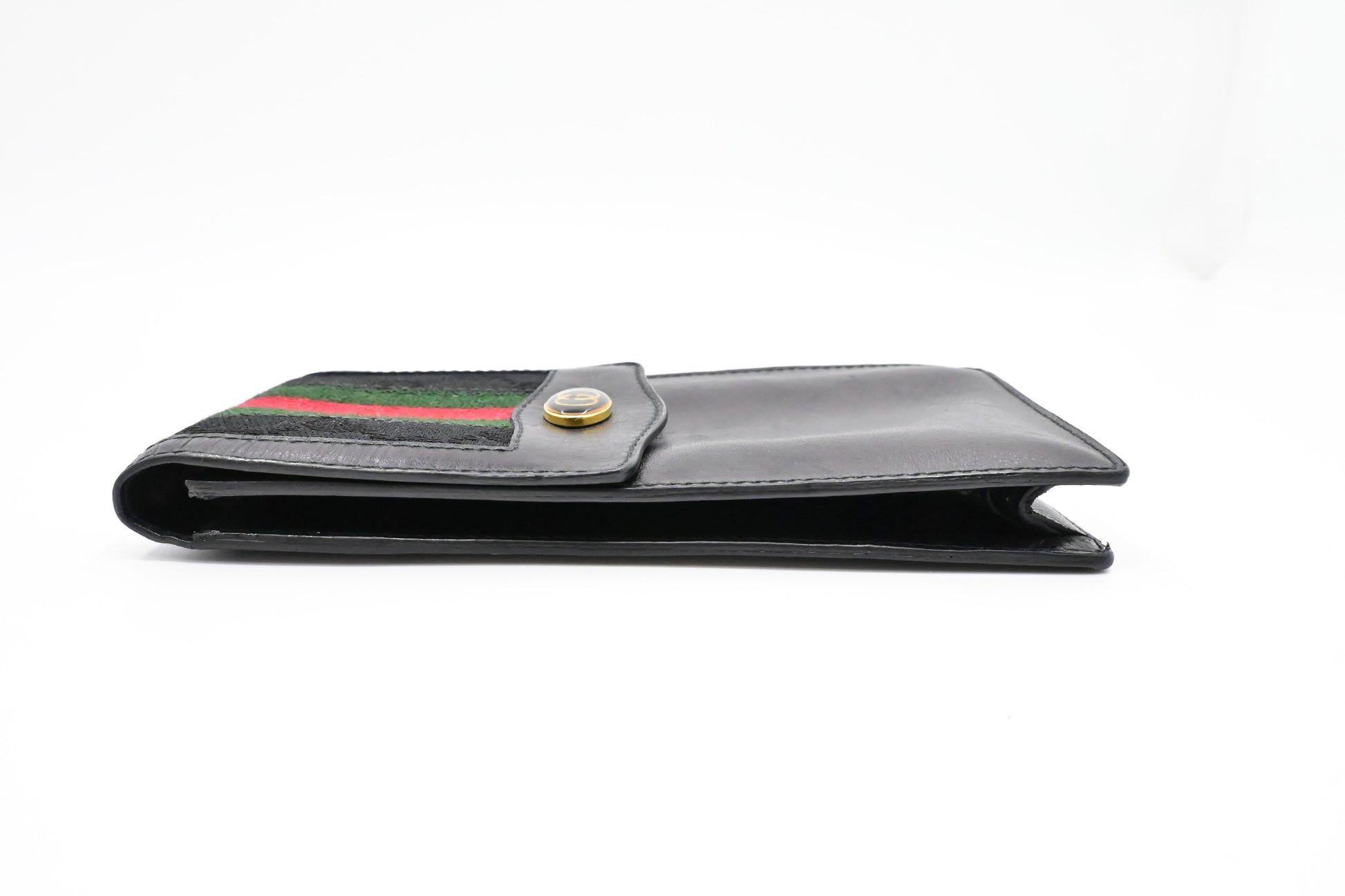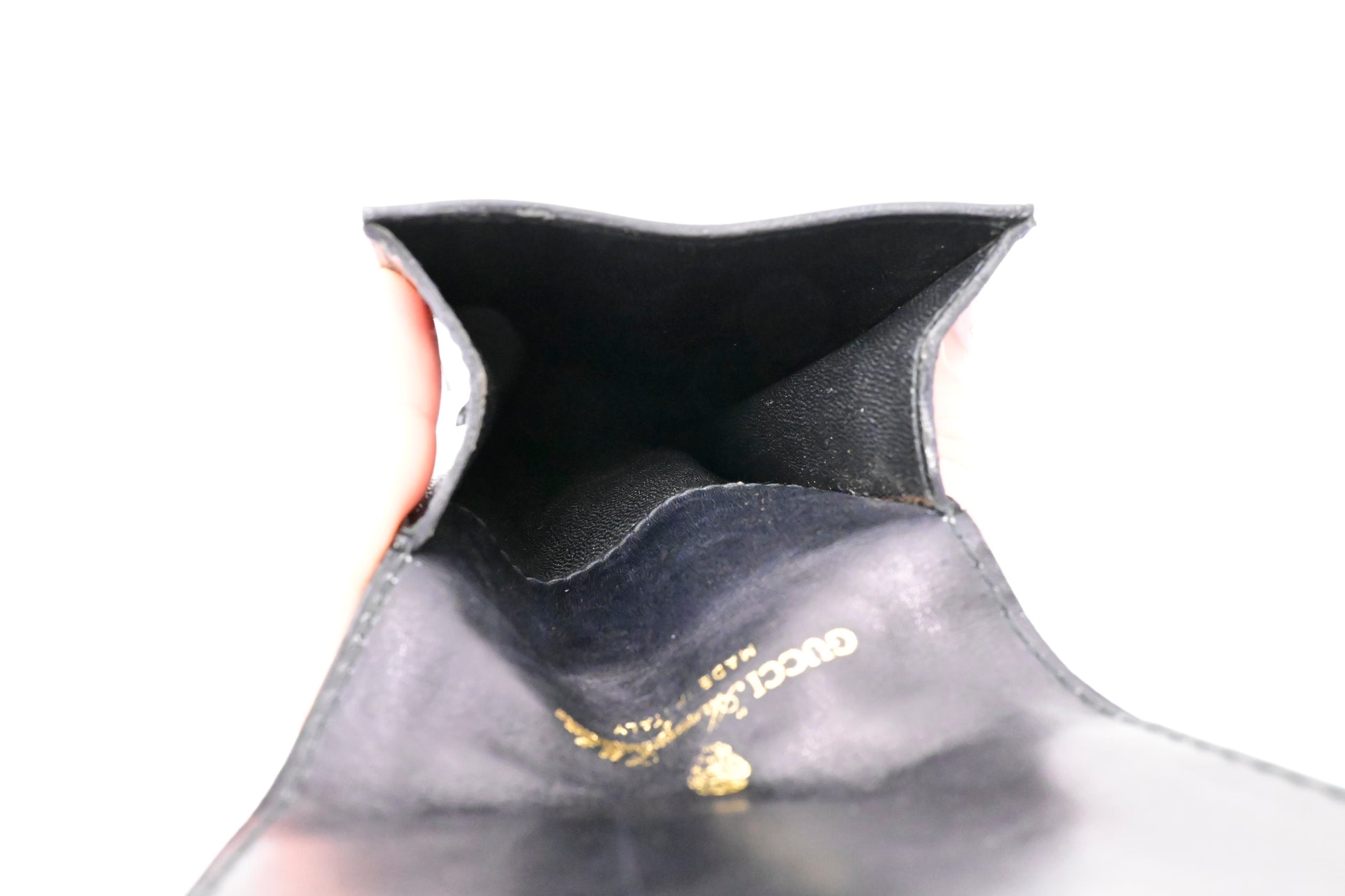 - Hardware: Shiny gold tone and black enamel with light surface wear, strong button snap