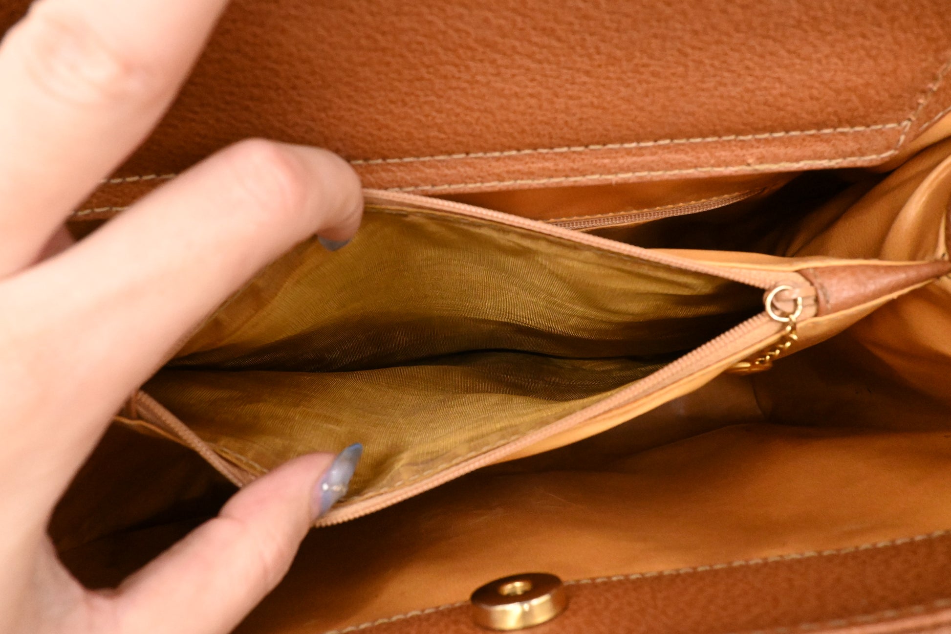 - Hardware: Brushed gold, strong snap, smooth zippers