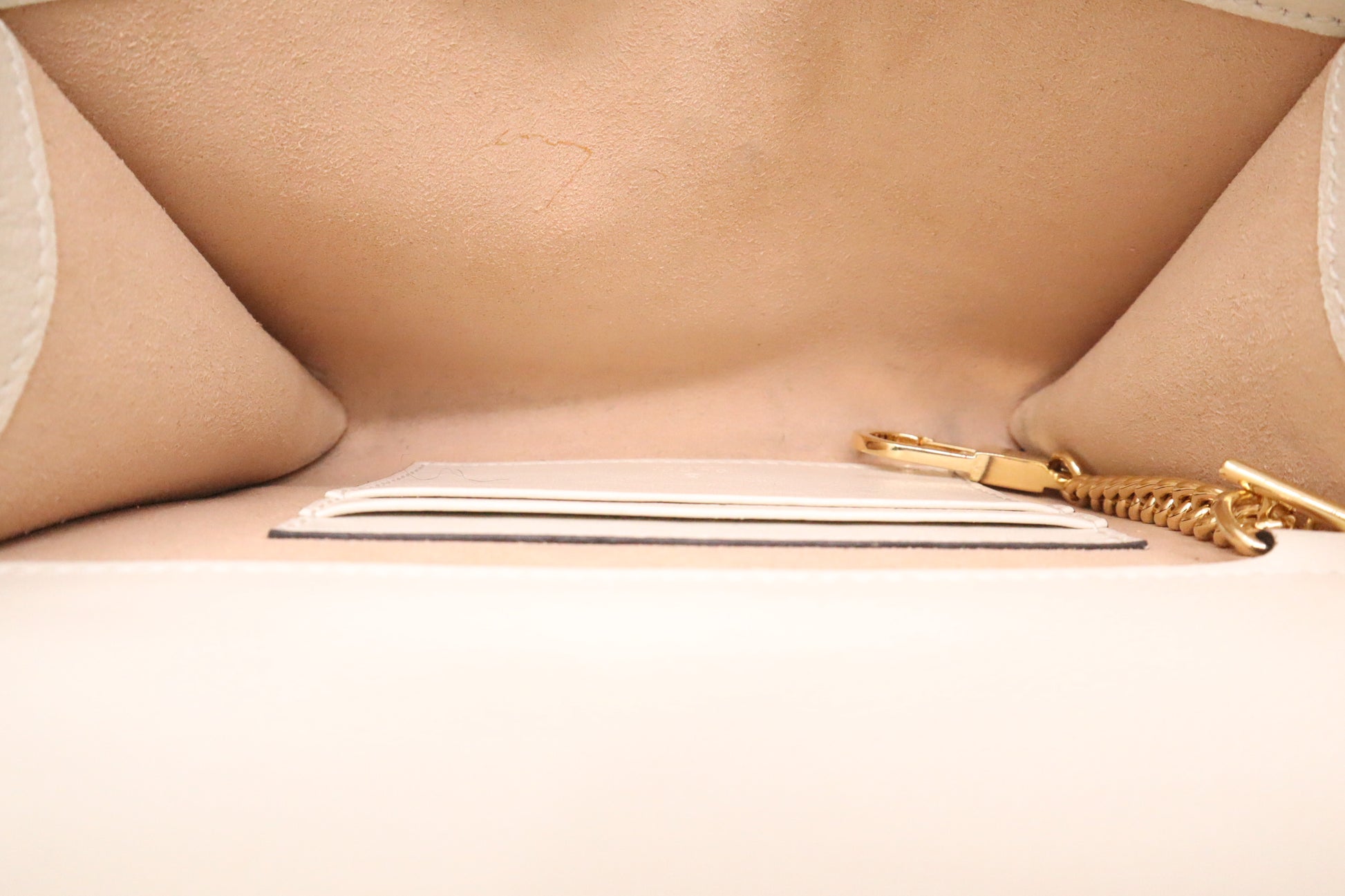 - Hardware: Shiny gold, strong snap