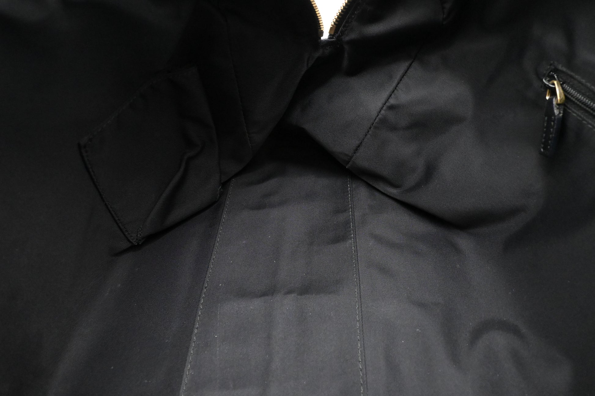 - Hardware: Shiny champagne gold with light surface wear, smooth zippers