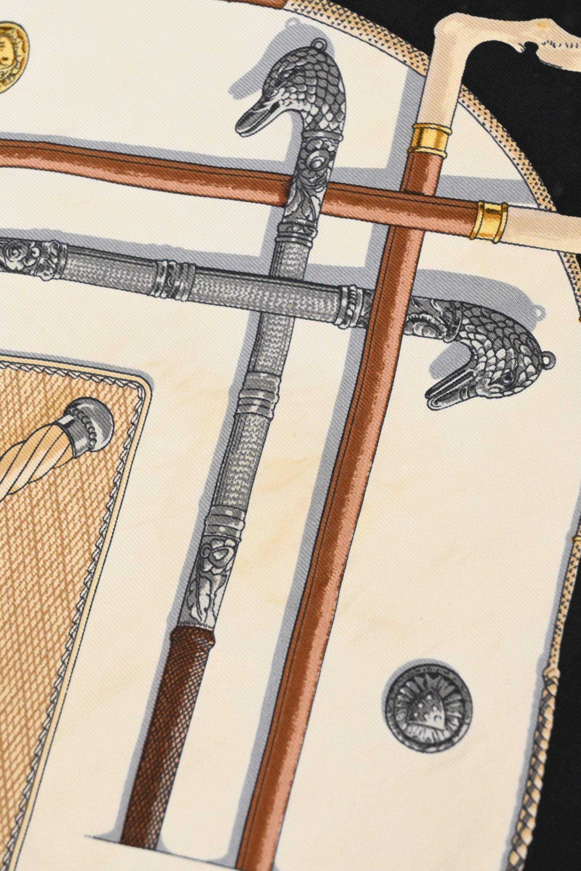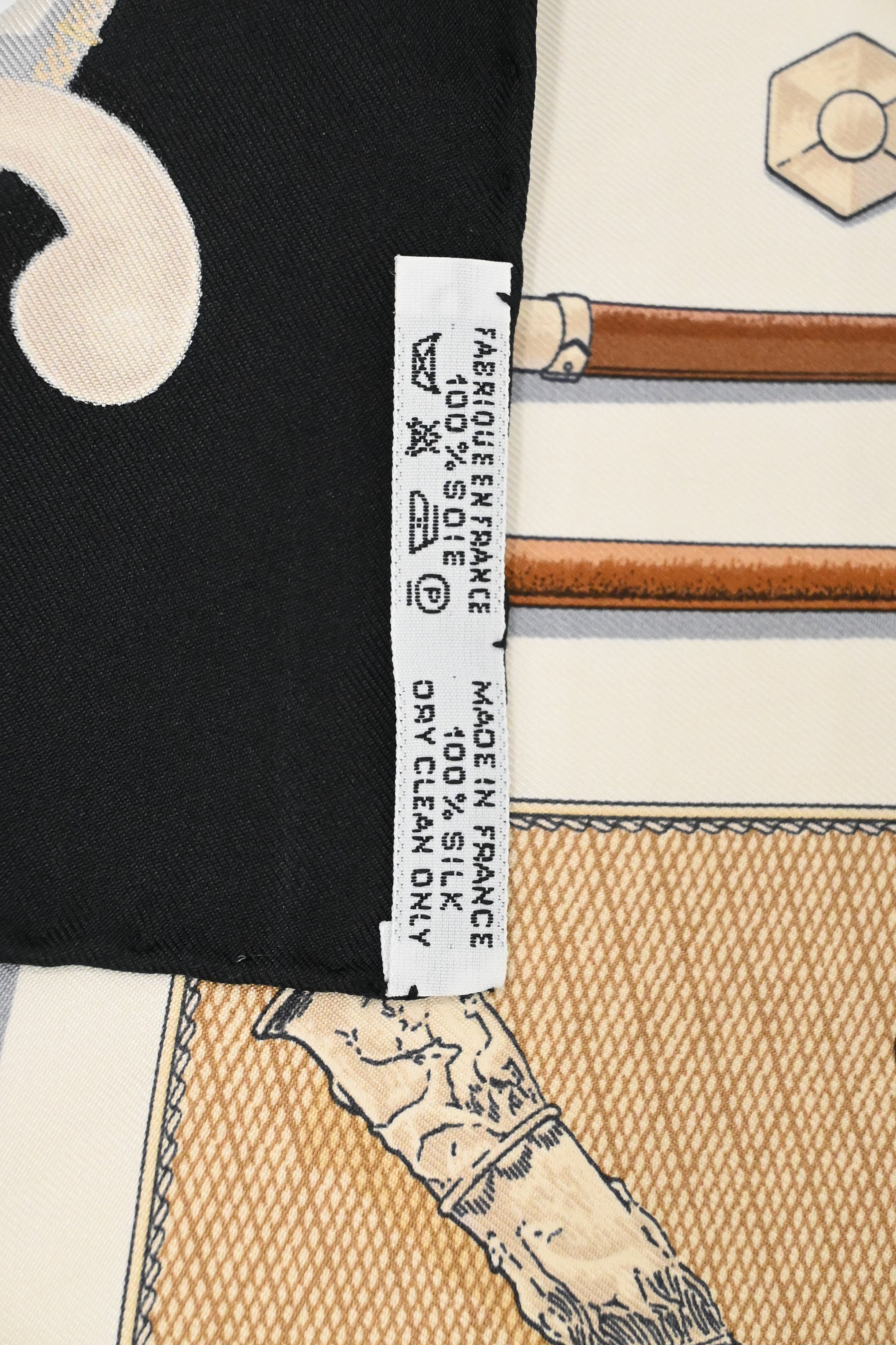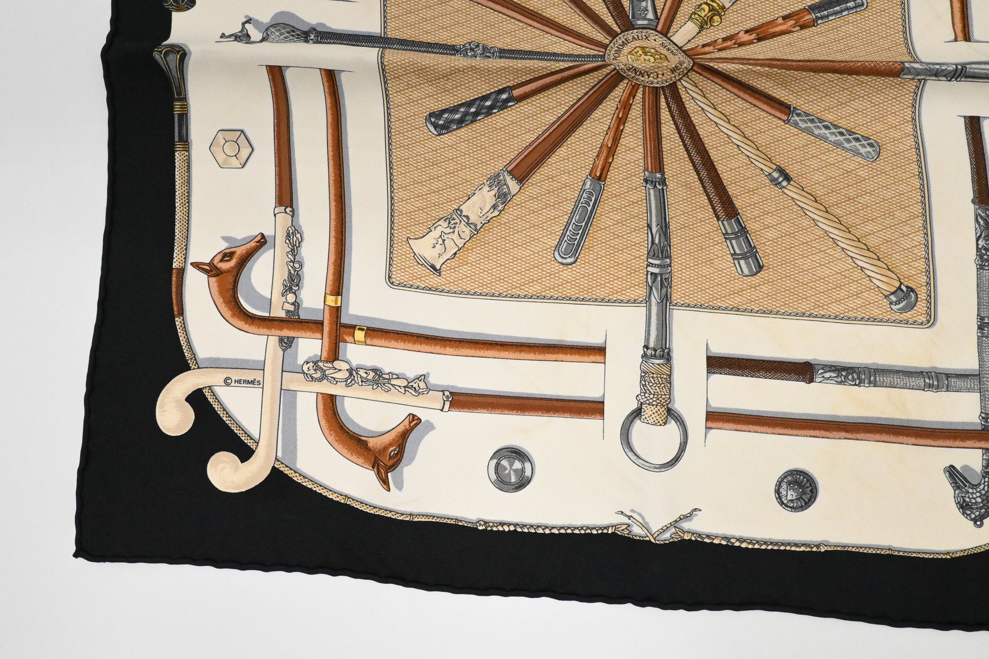 Hermes 'Cannes et Pommeaux' Gavroche in Black and Cream Silk