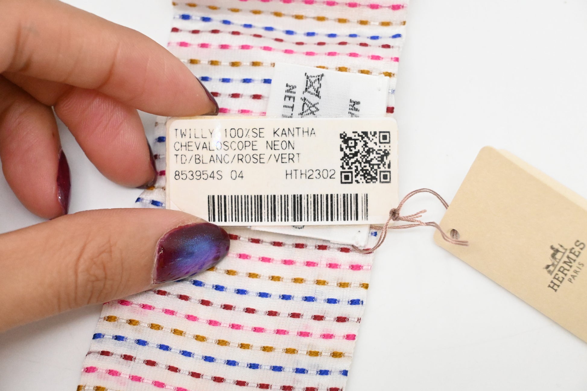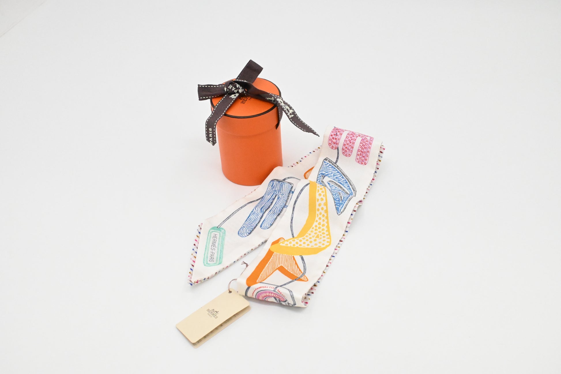 Hermes 'Chevaloscope Pointille' Twilly in White Multicolor Silk