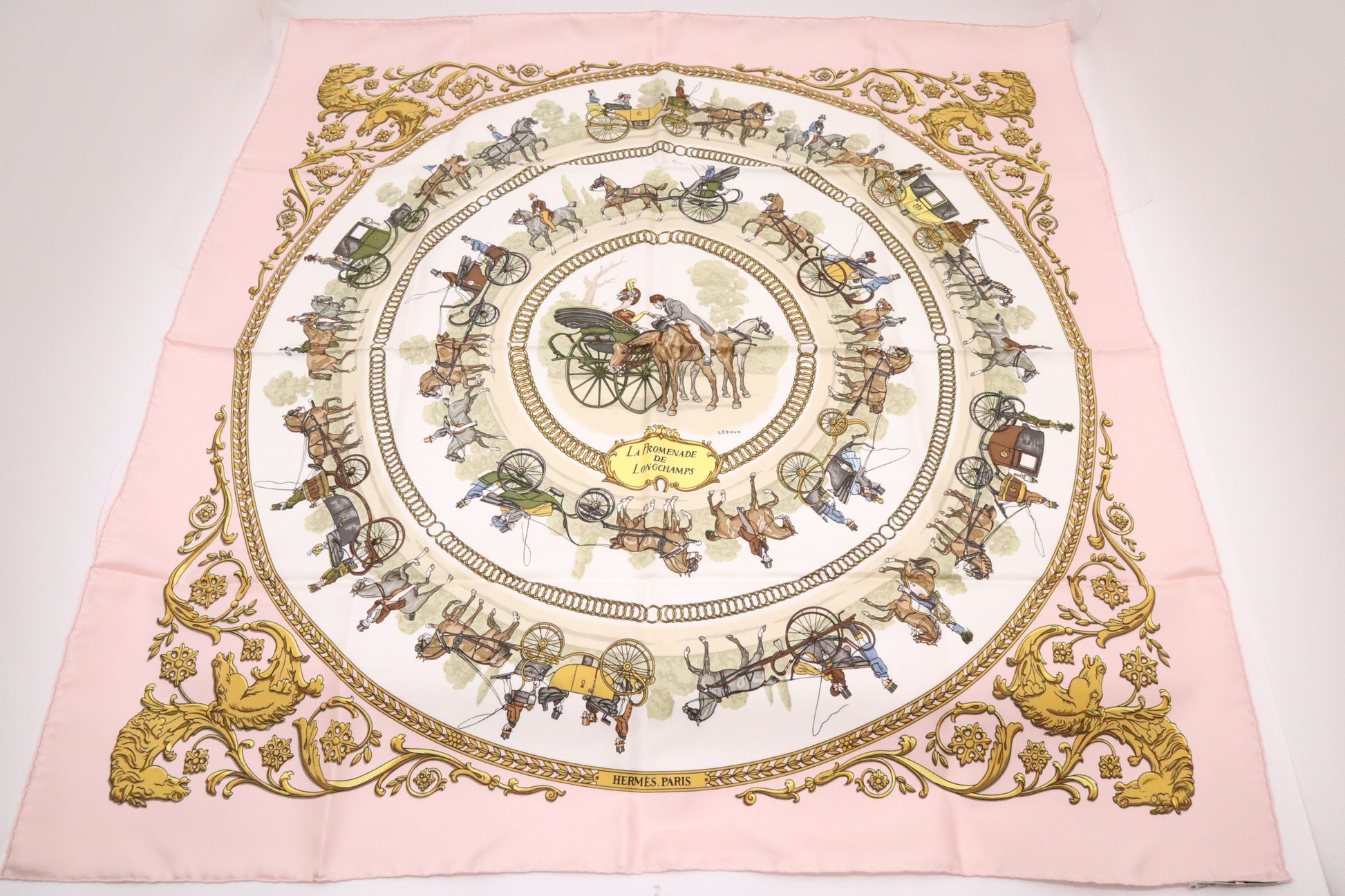 Hermes "La Promenade de Longchamps" Carre 90 in Pink Silk