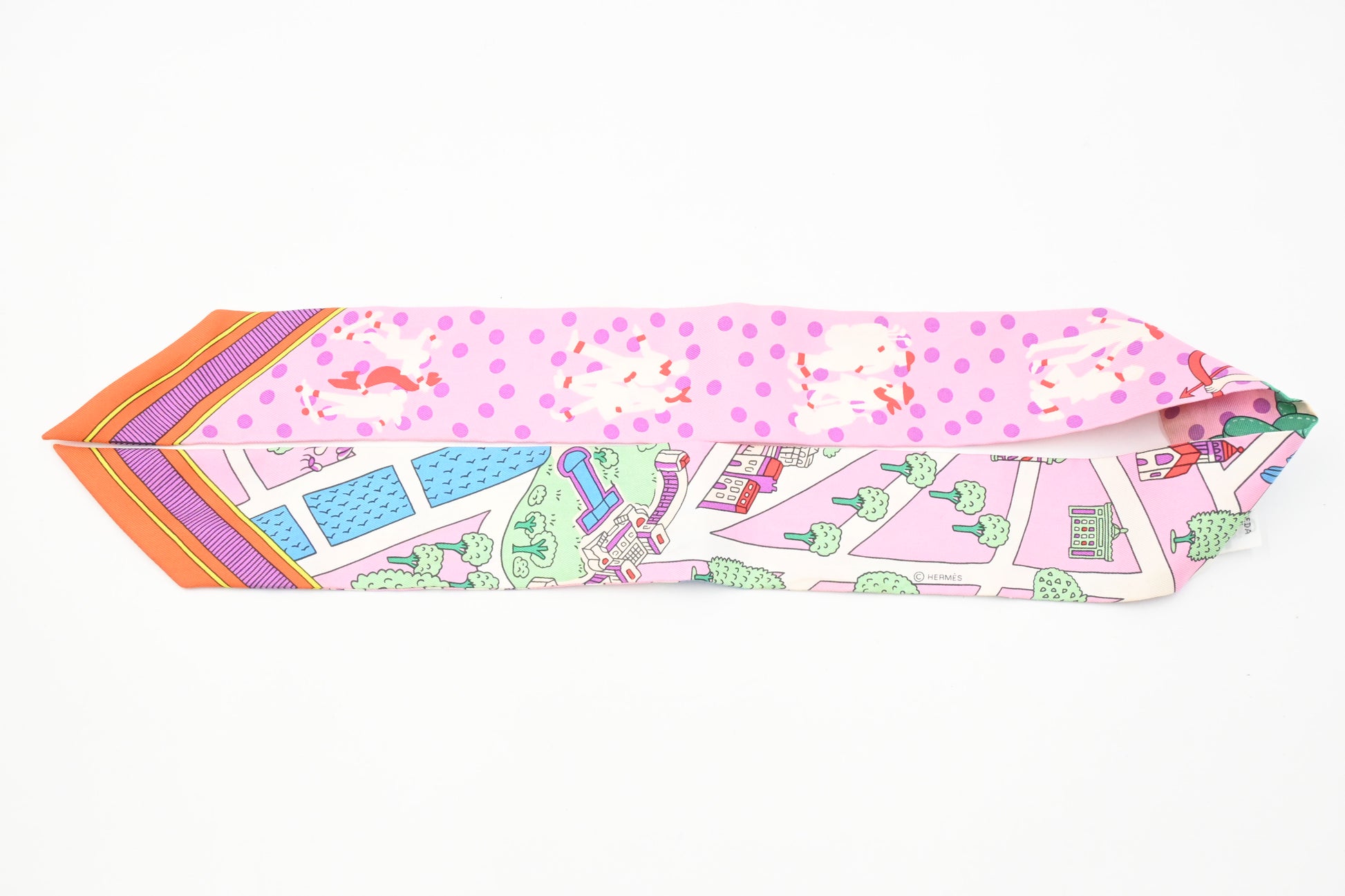Hermes 'Les Nouveaux Amoureux de Paris' Twilly in Pink Silk