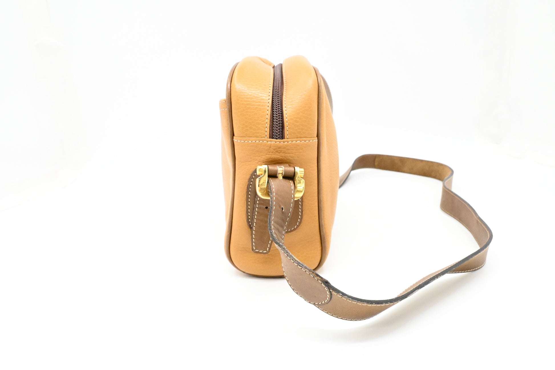 - Hardware: Shiny gold tone with silvering. Smooth zipper