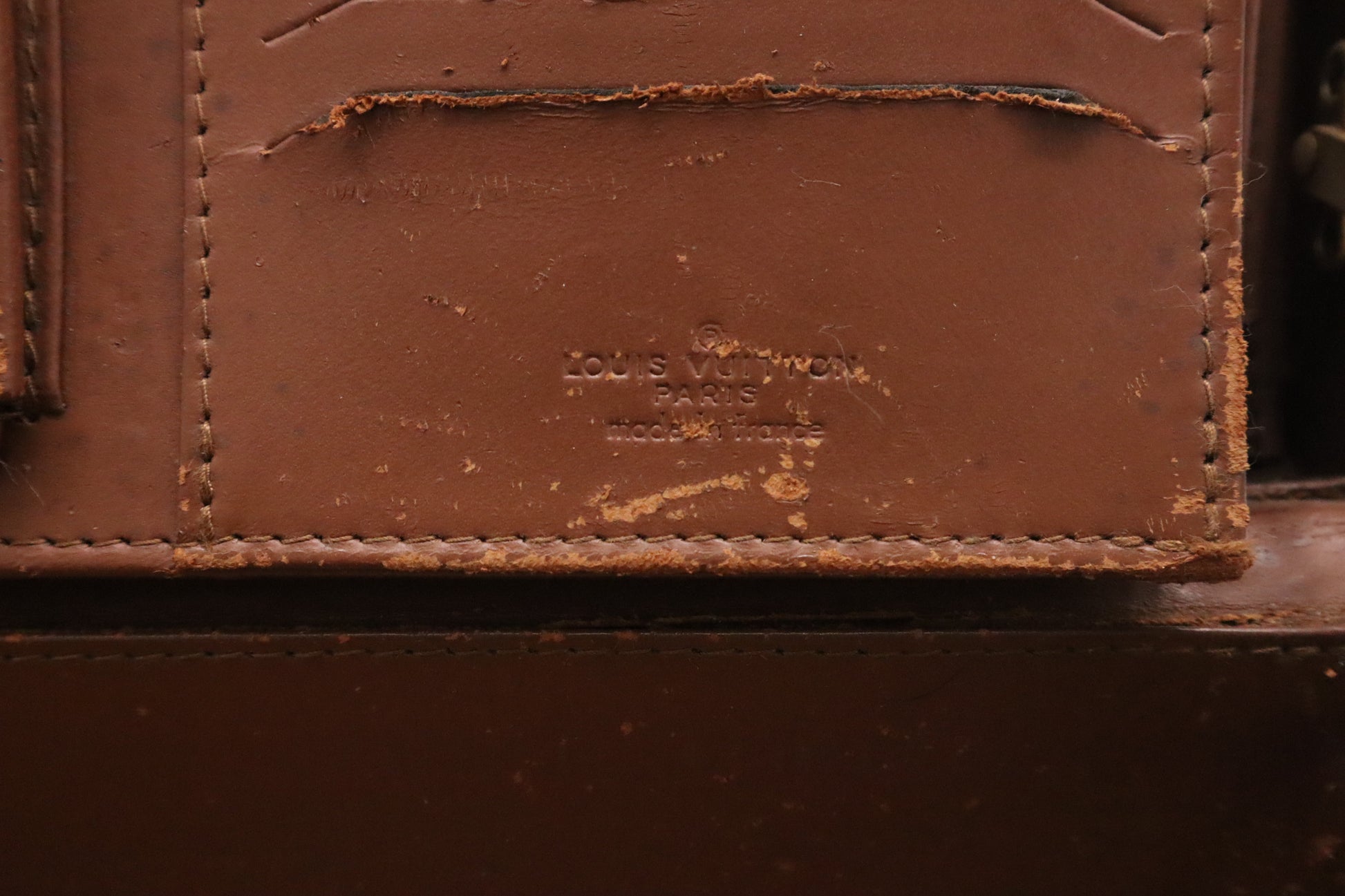 - Other: Faint marks throughout, hairlines on the leather straps, an identification sticker
