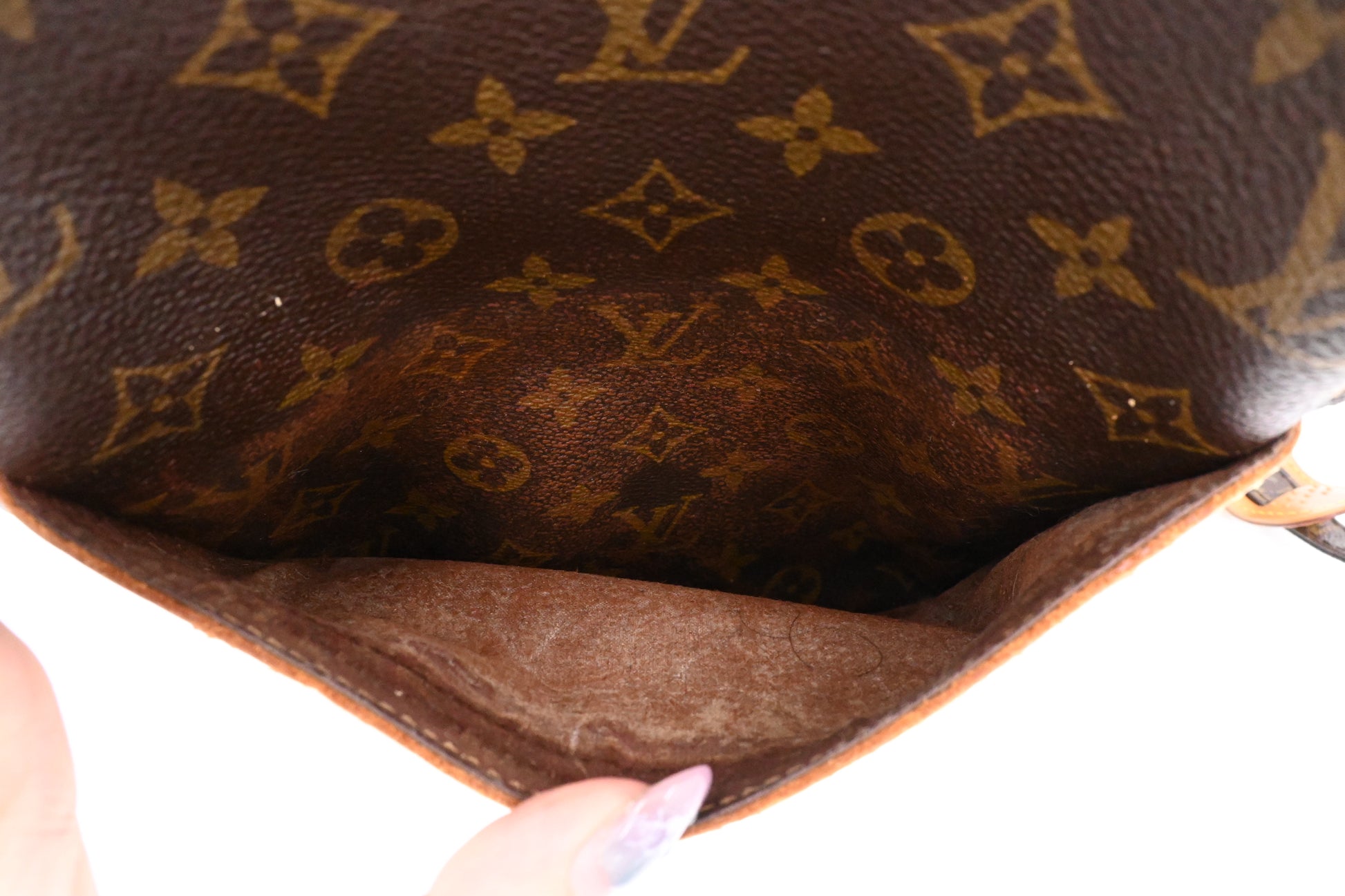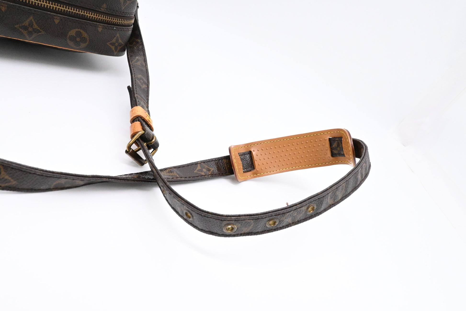 - Leather parts/Vachetta: Good. Rubs and hairlines. Water marks