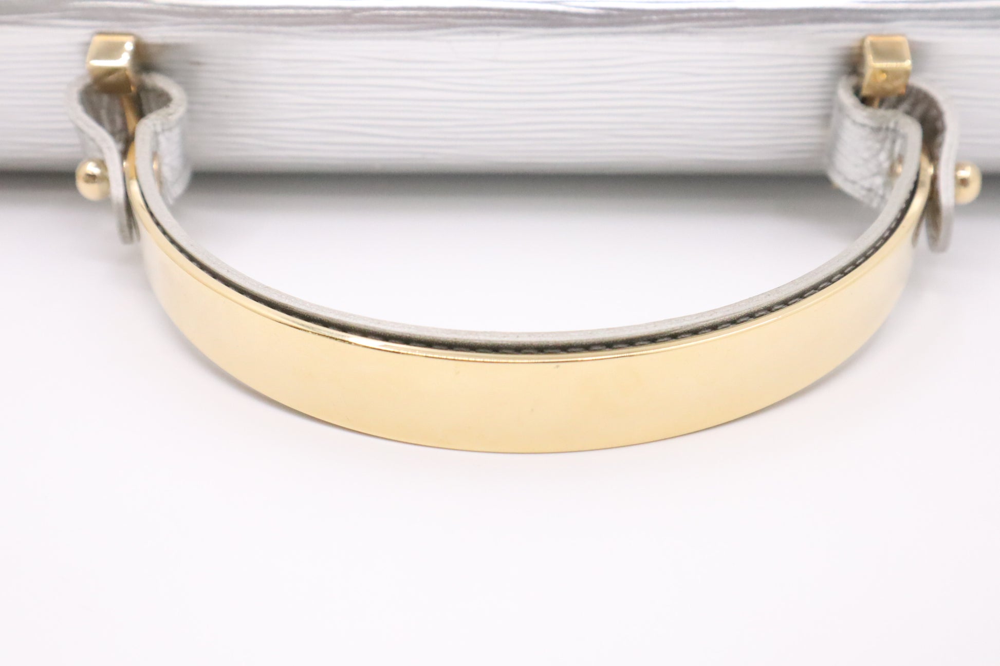 - Hardware: Shiny gold with light surface rub, working closures