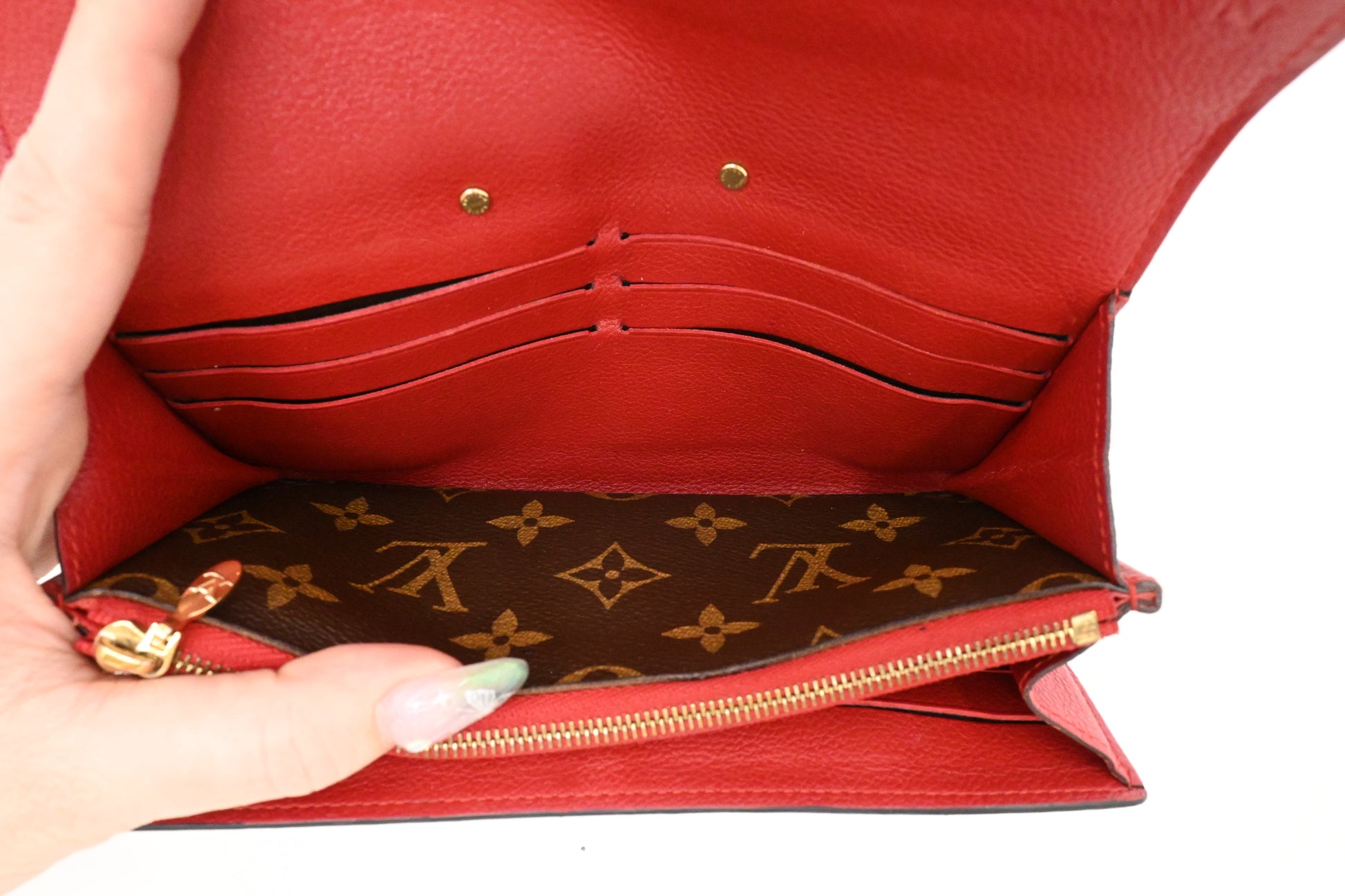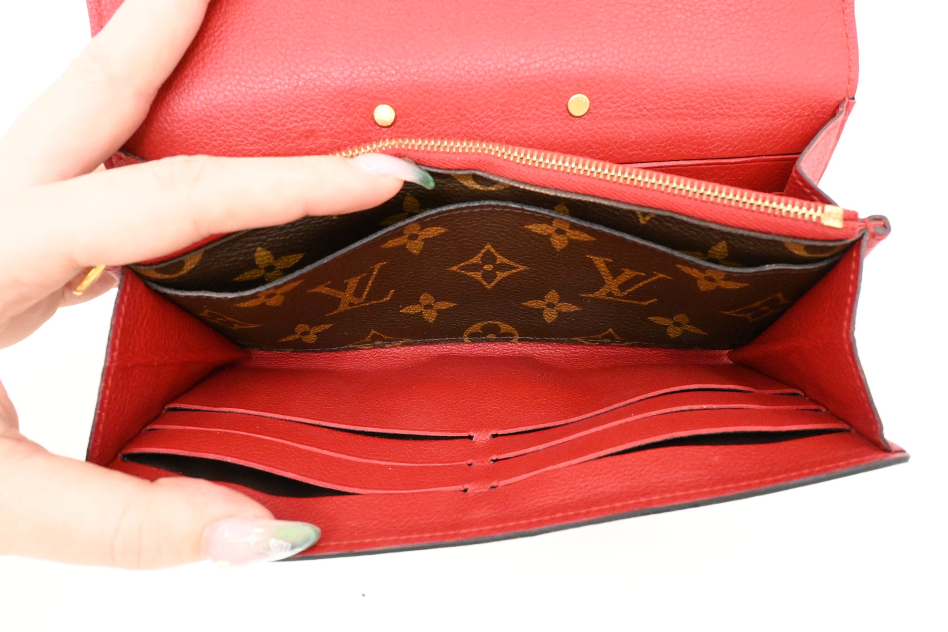 Louis Vuitton Pallas Wallet in Red Leather and Monogram Canvas