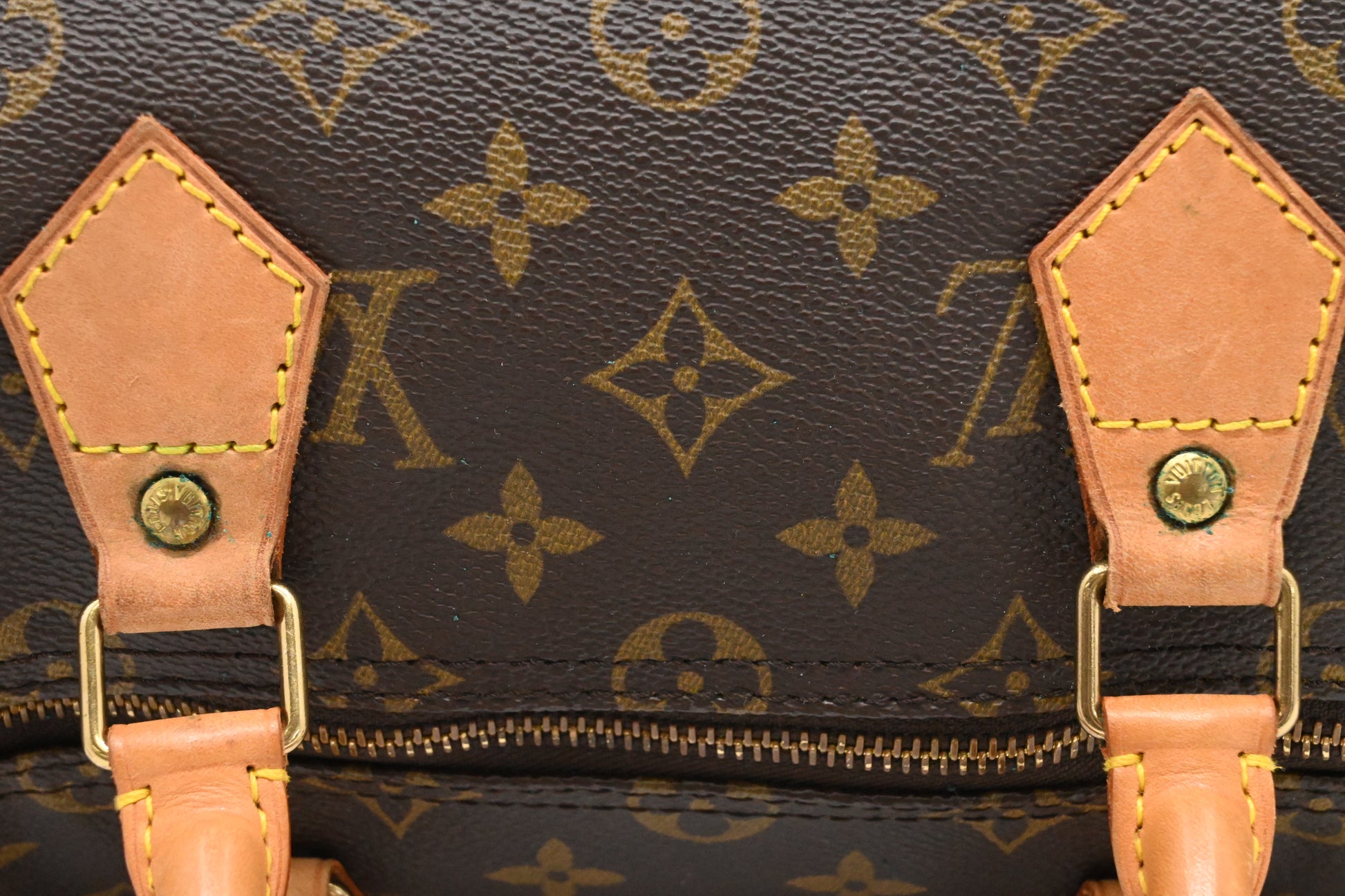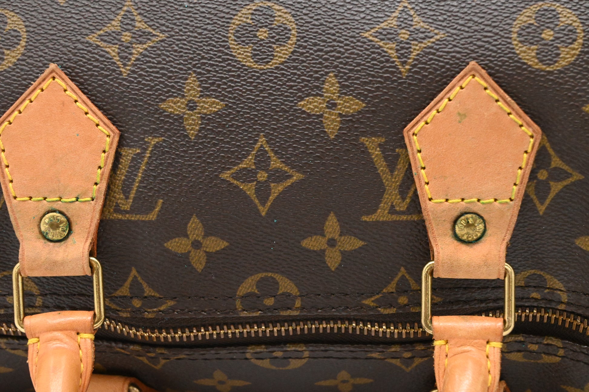 - Leather parts/Vachetta: Very good. Discreet marks