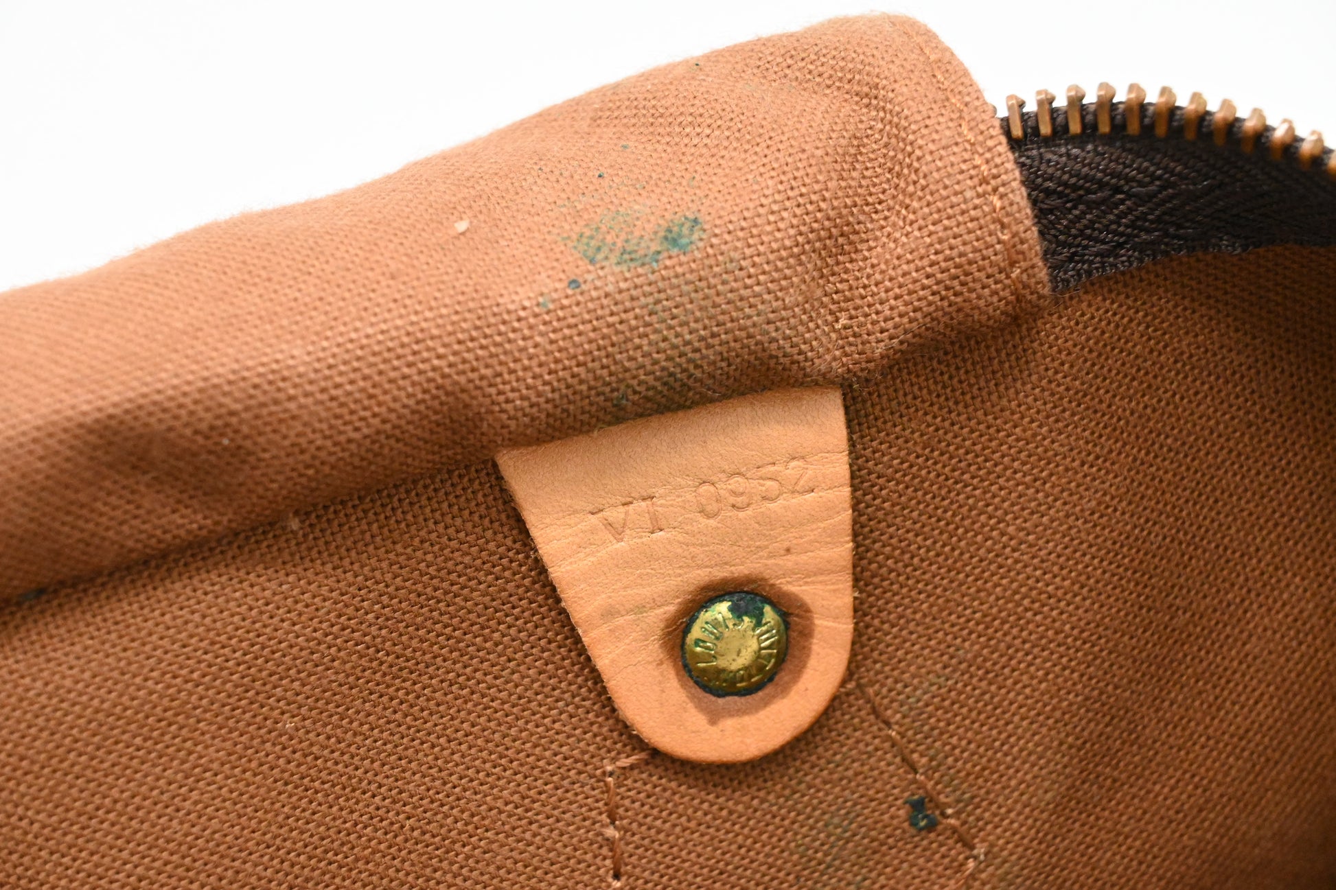 - Hardware: Shiny gold tone. Smooth zipper. Smalloxydation residue around the rivets