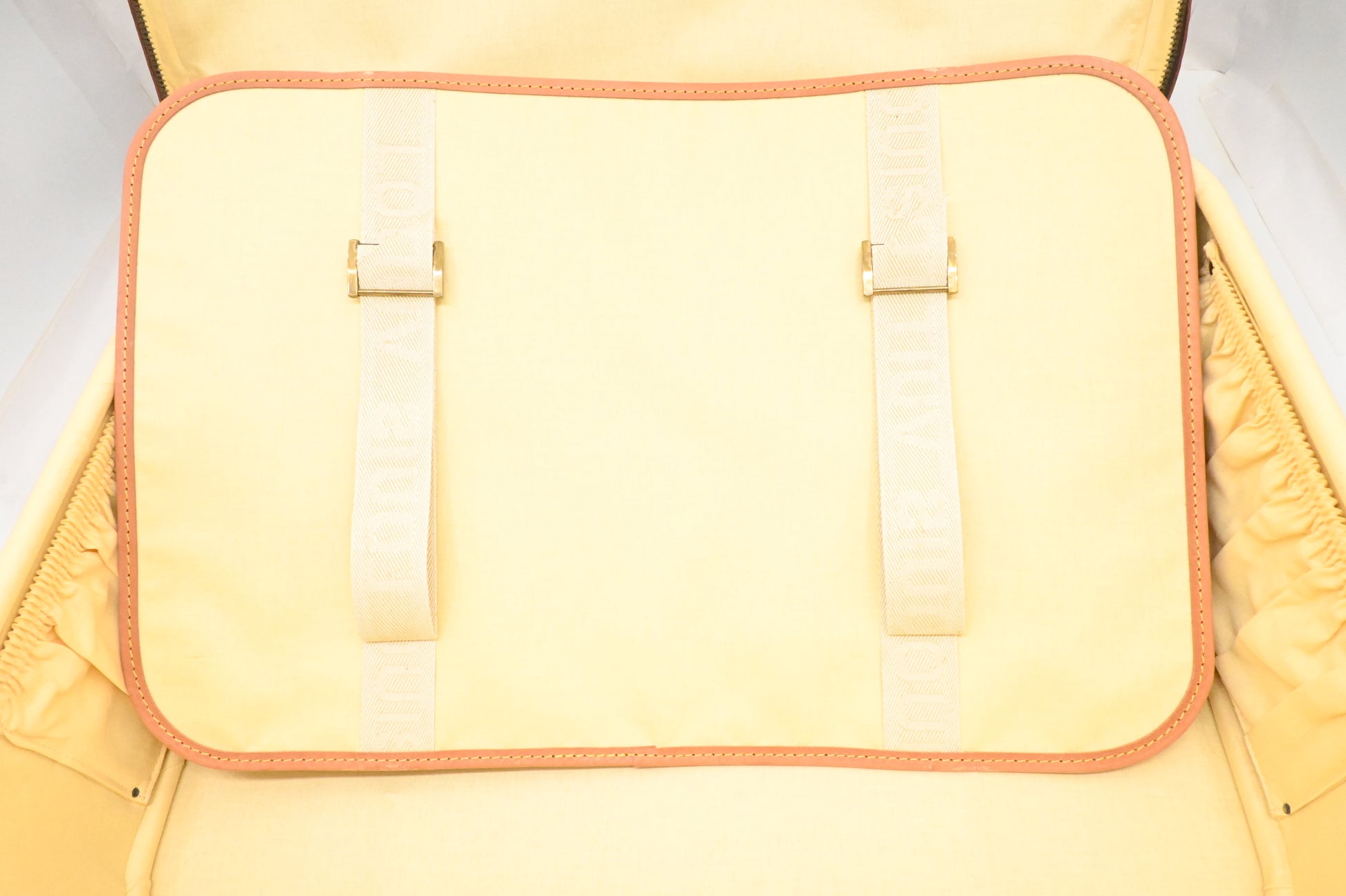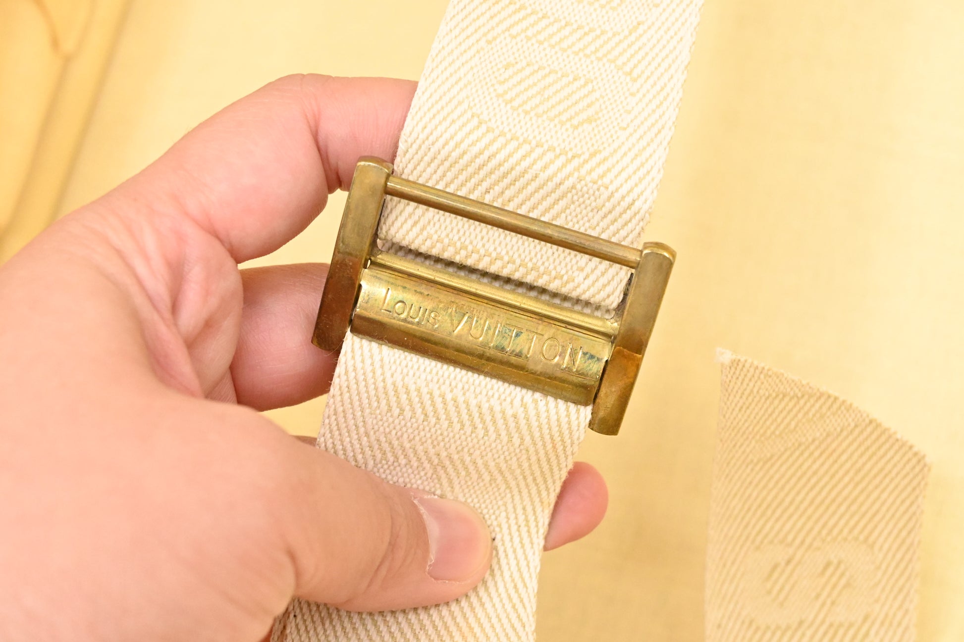 - Leather parts/Vachetta: Very good. Some surface rubbing marks. Belts have folding lines