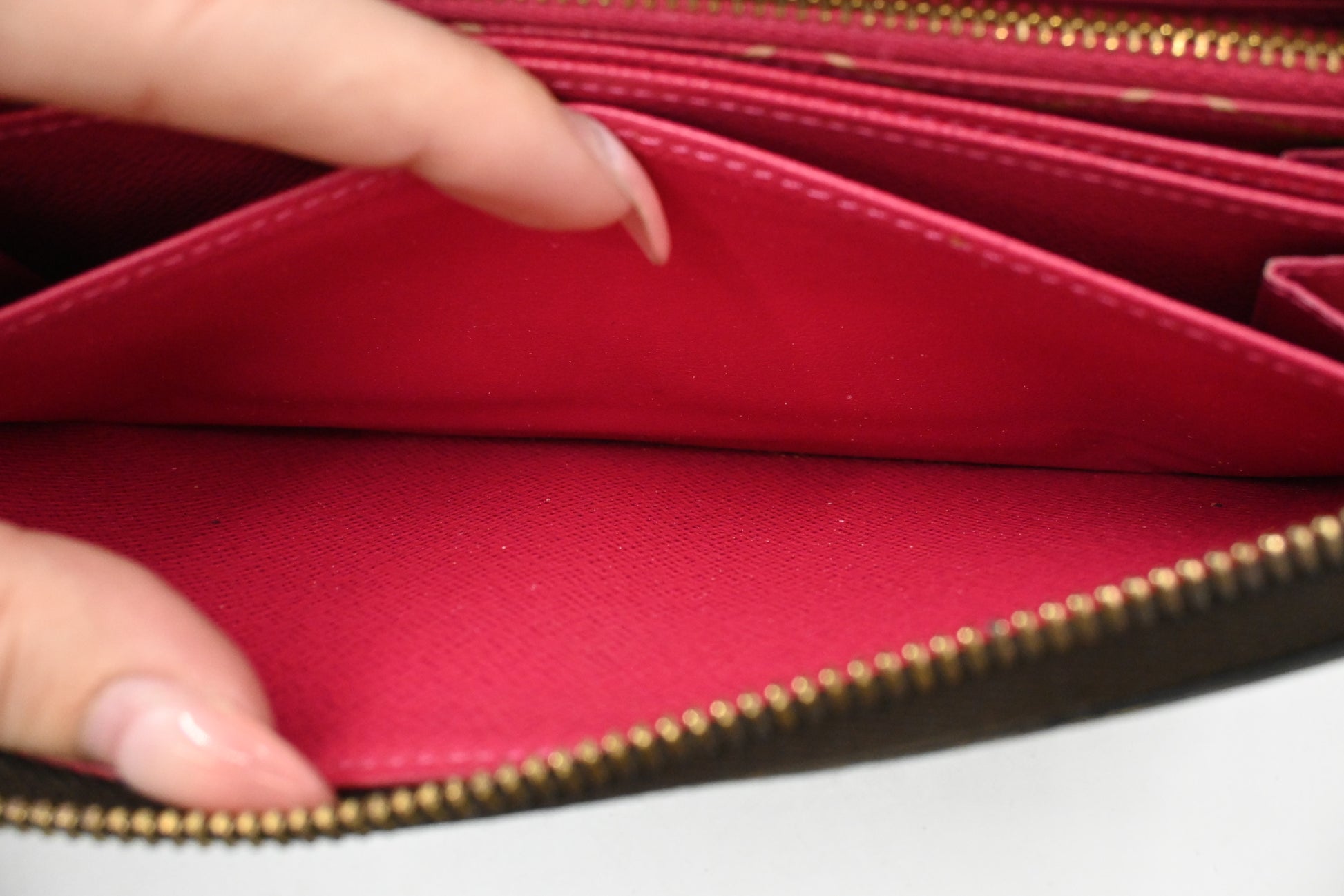 - Hardware: Shiny gold with light silvering, smooth zipper