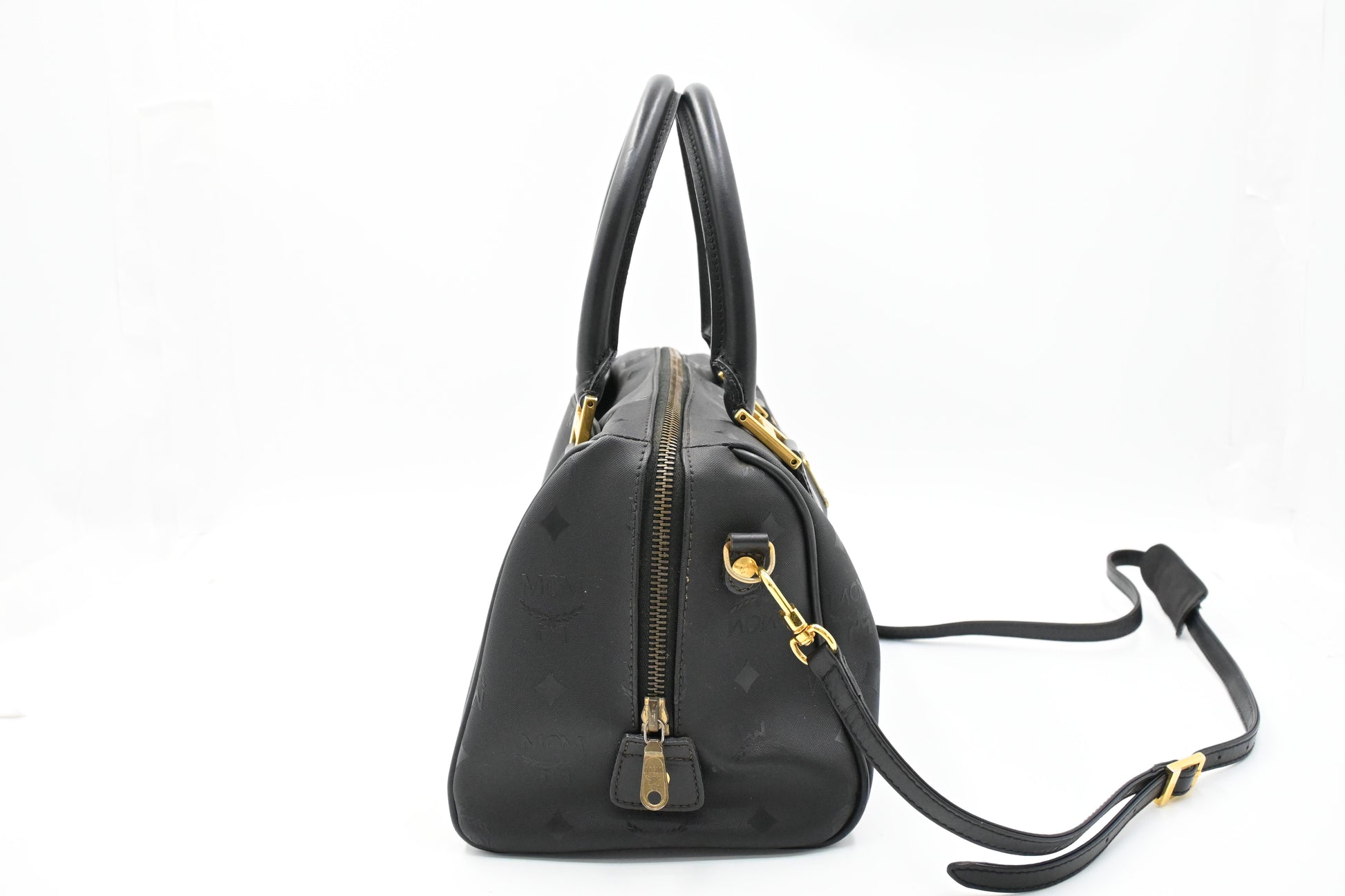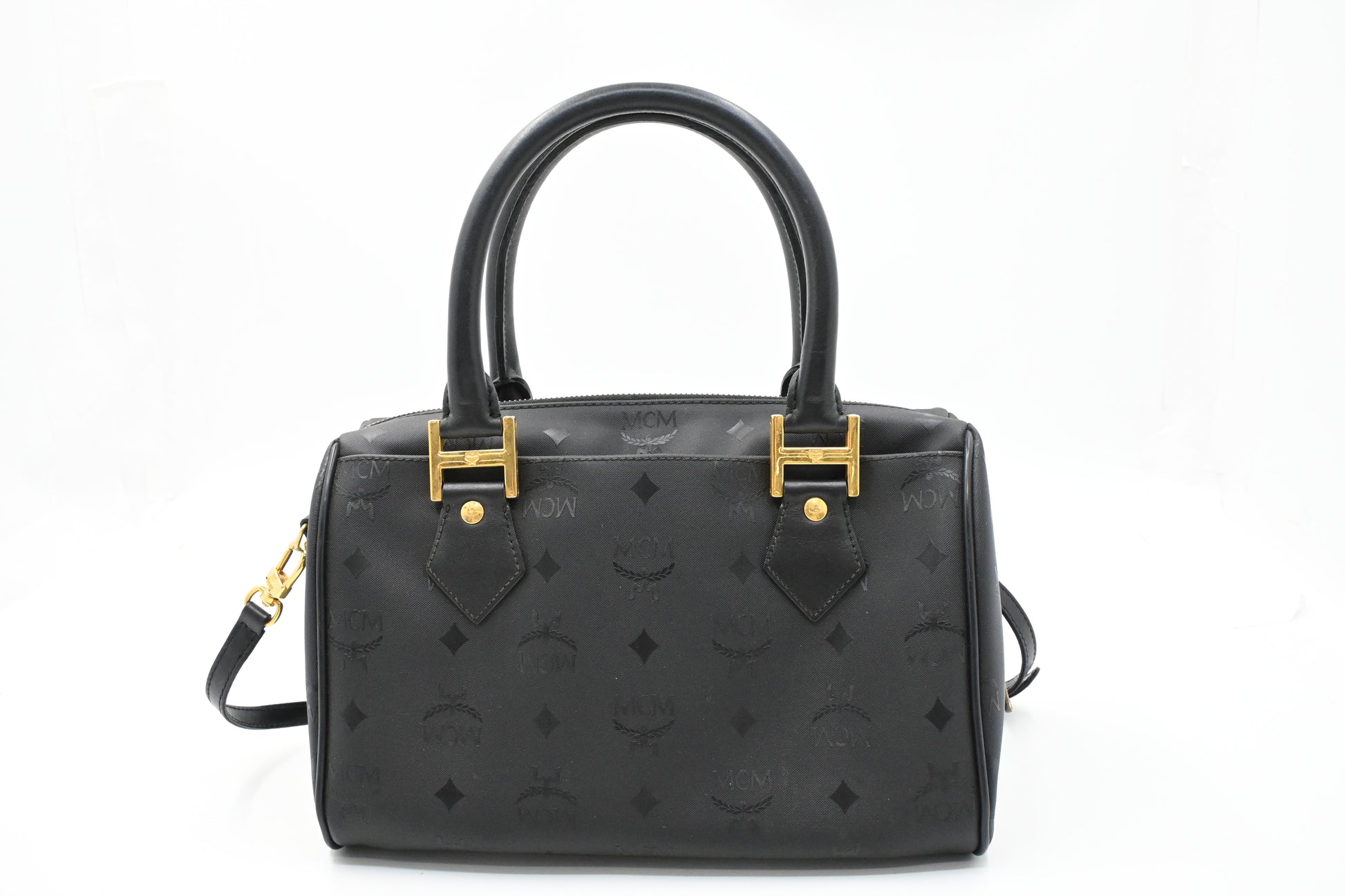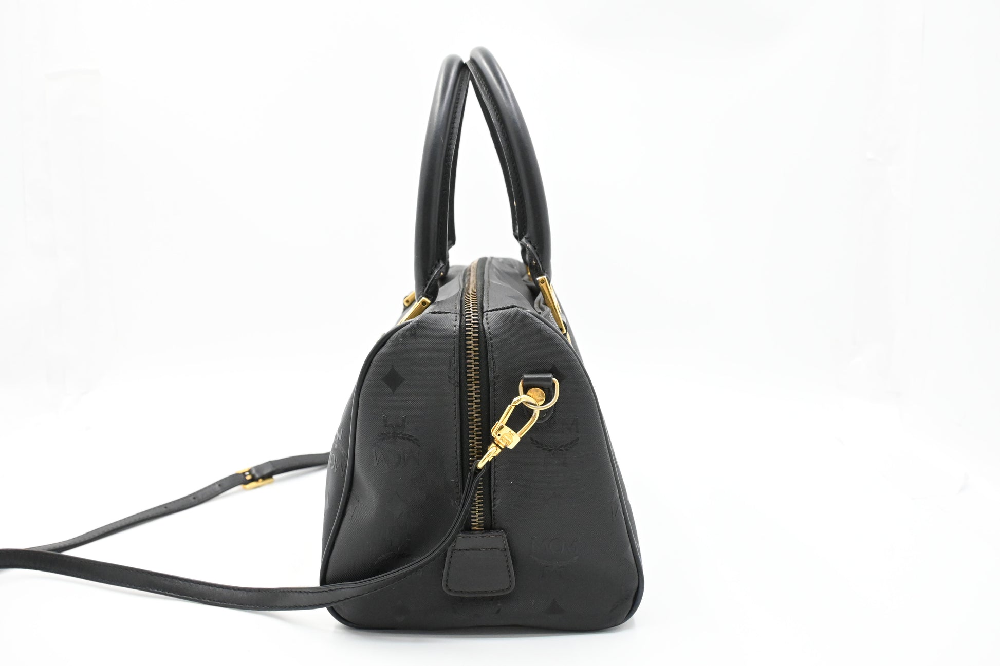 MCM 2way Boston Bag in Black Coated Canvas