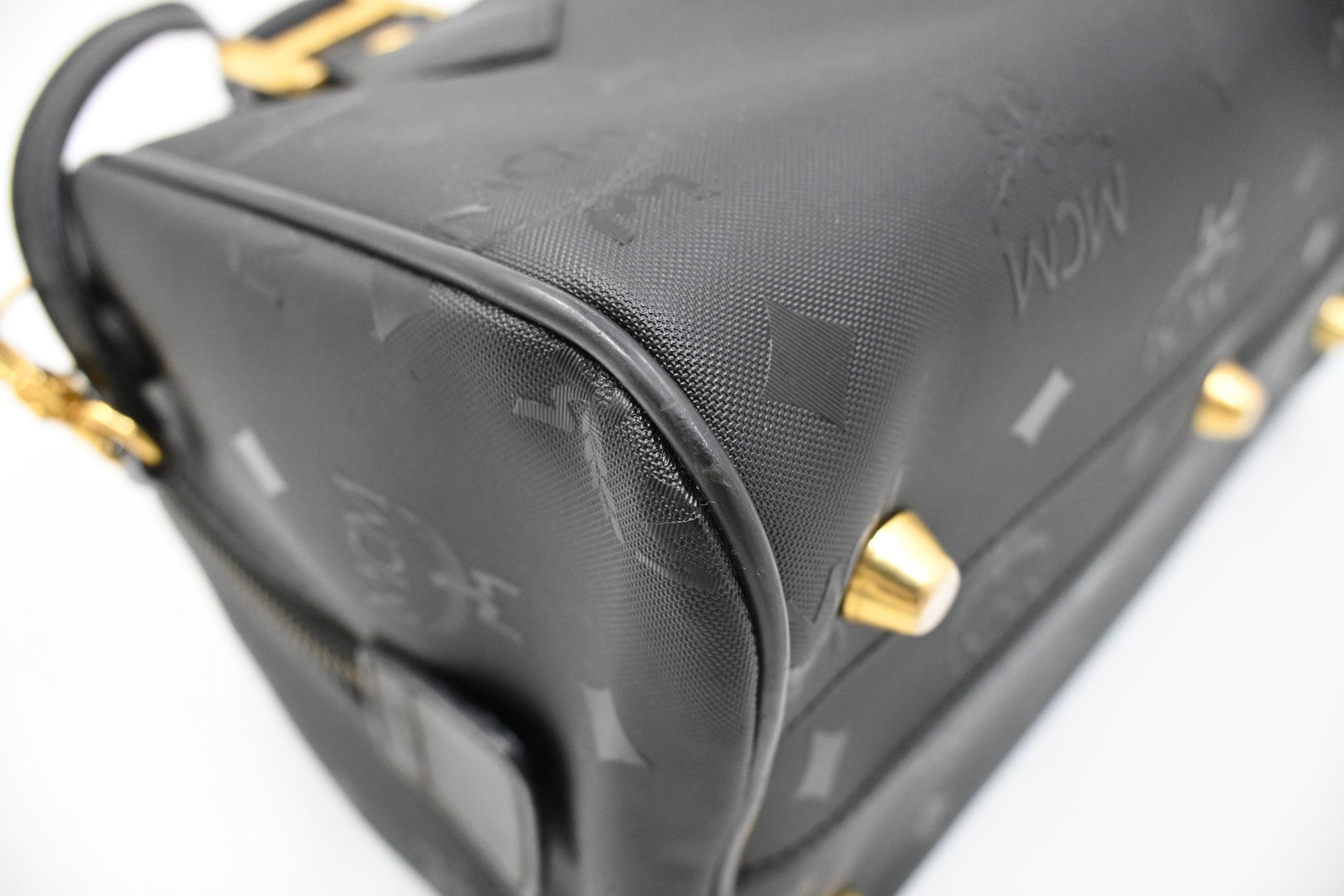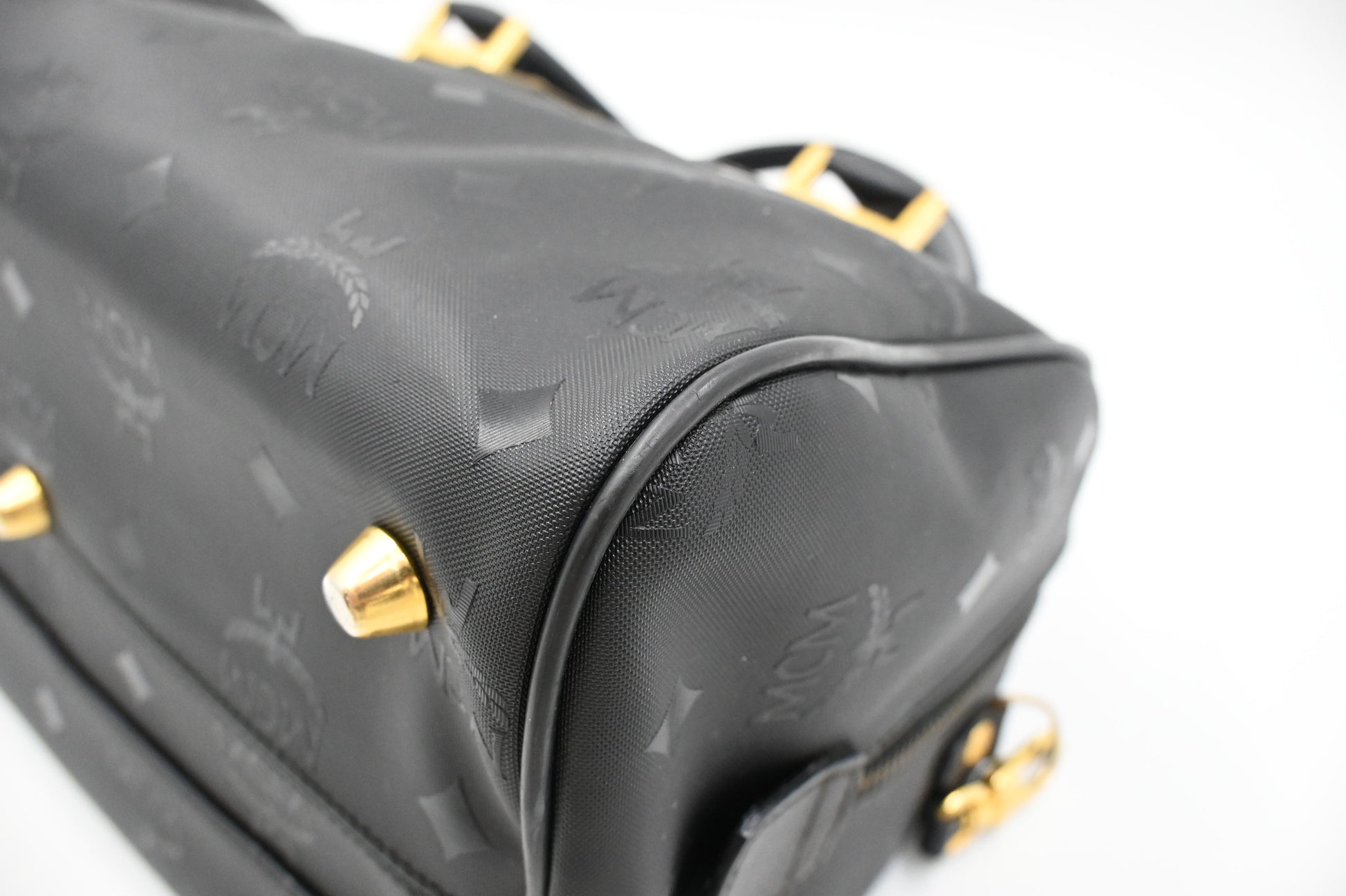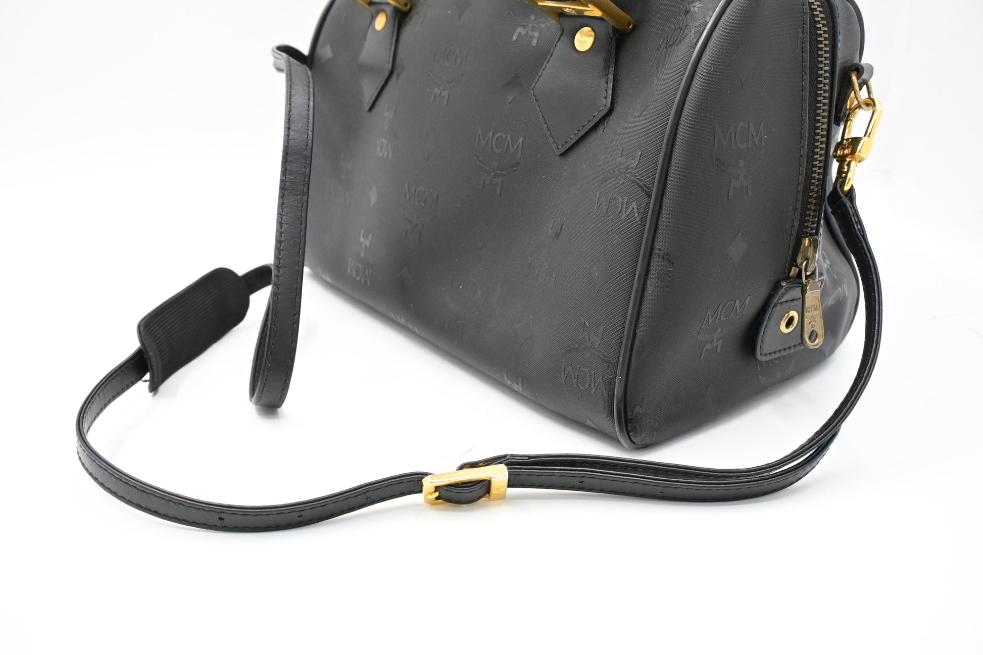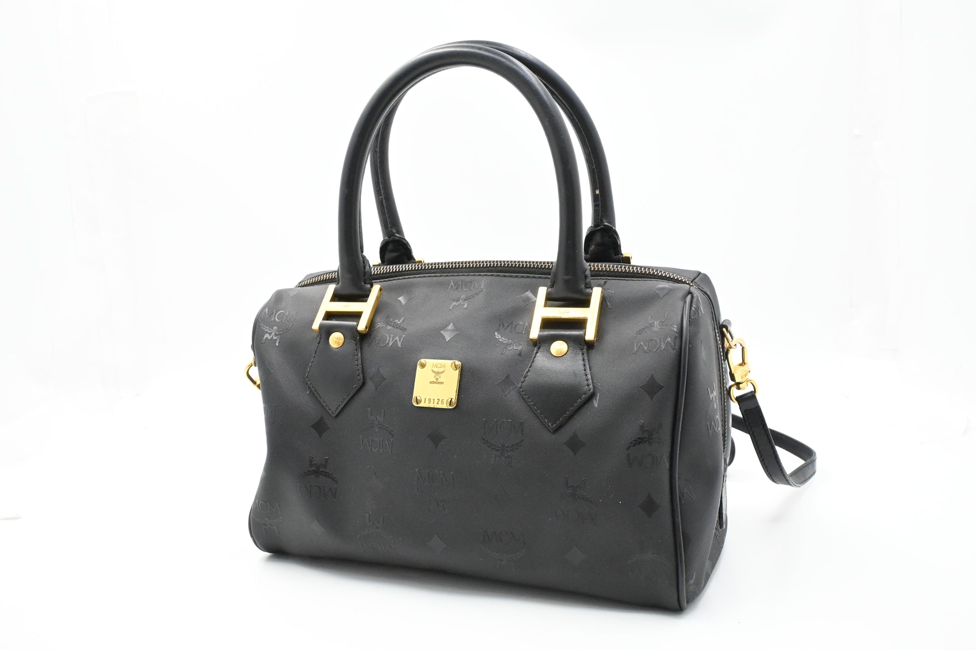 MCM 2way Boston Bag in Black Coated Canvas