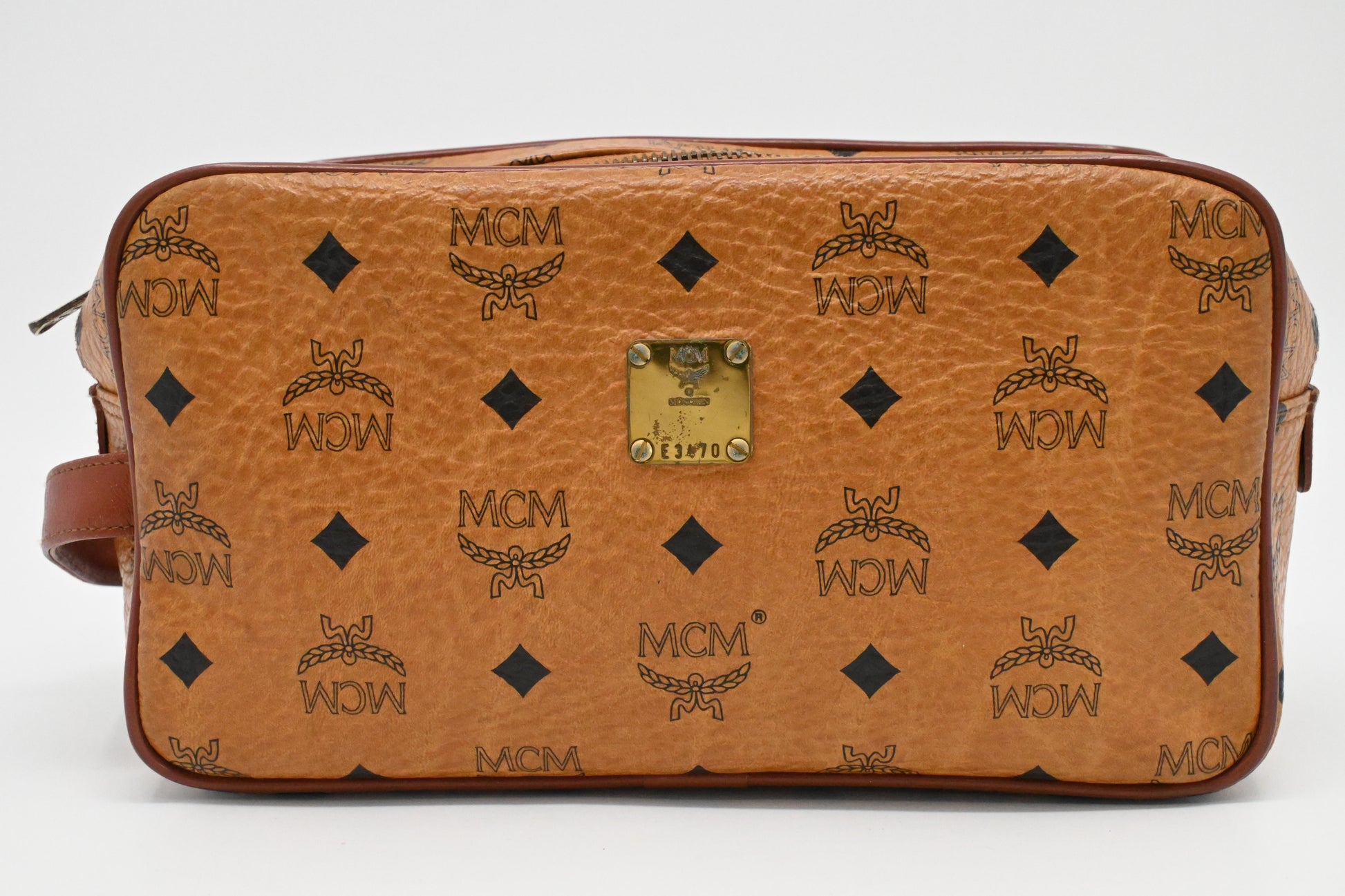 MCM Handle Pouch in Cognac Visetos Canvas
