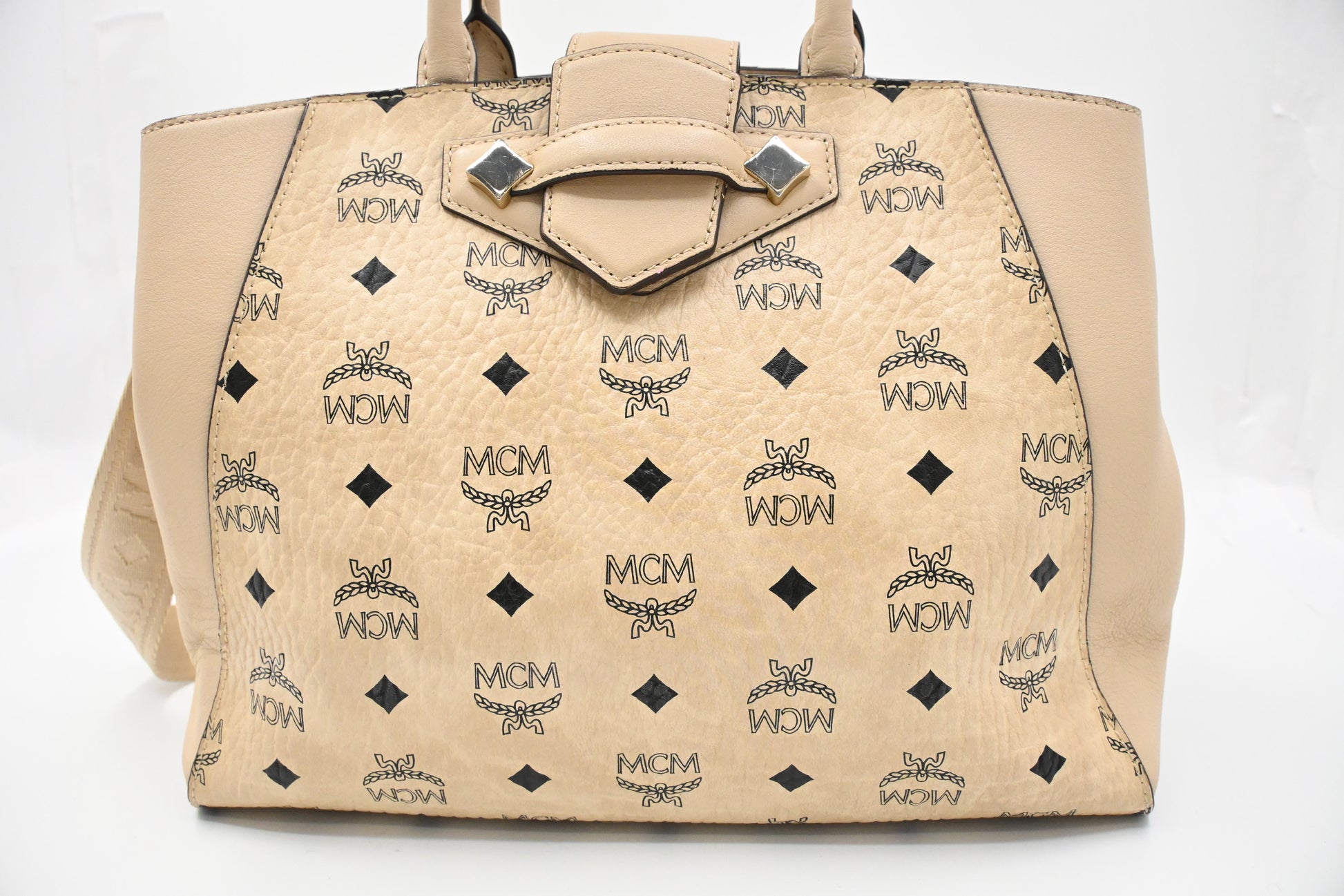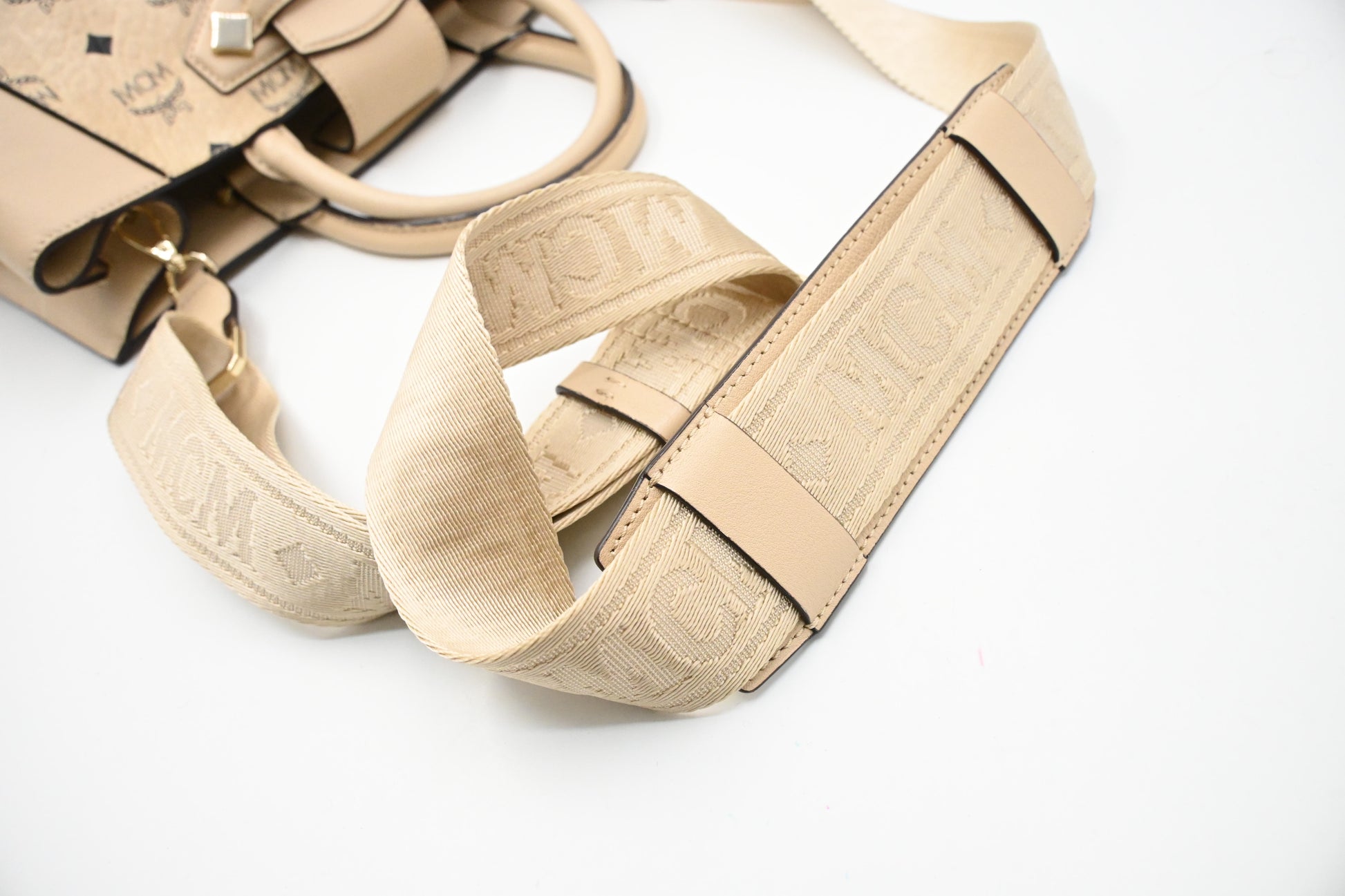MCM Two Way Bag in Beige Visetos Canvas
